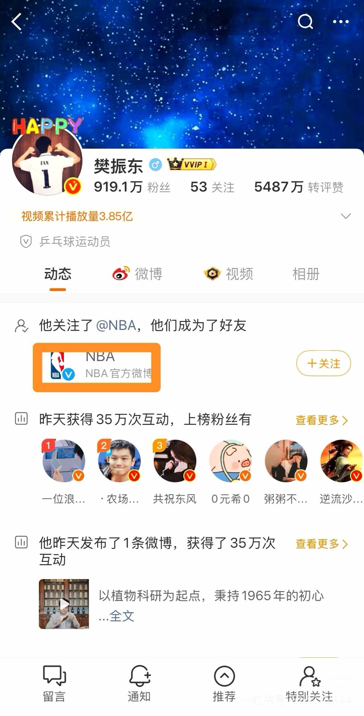 NBA和东哥互关了。东哥是NBA关注的唯一一个非篮球体育人,希望有好事发生[祈祷][祈祷][祈祷]