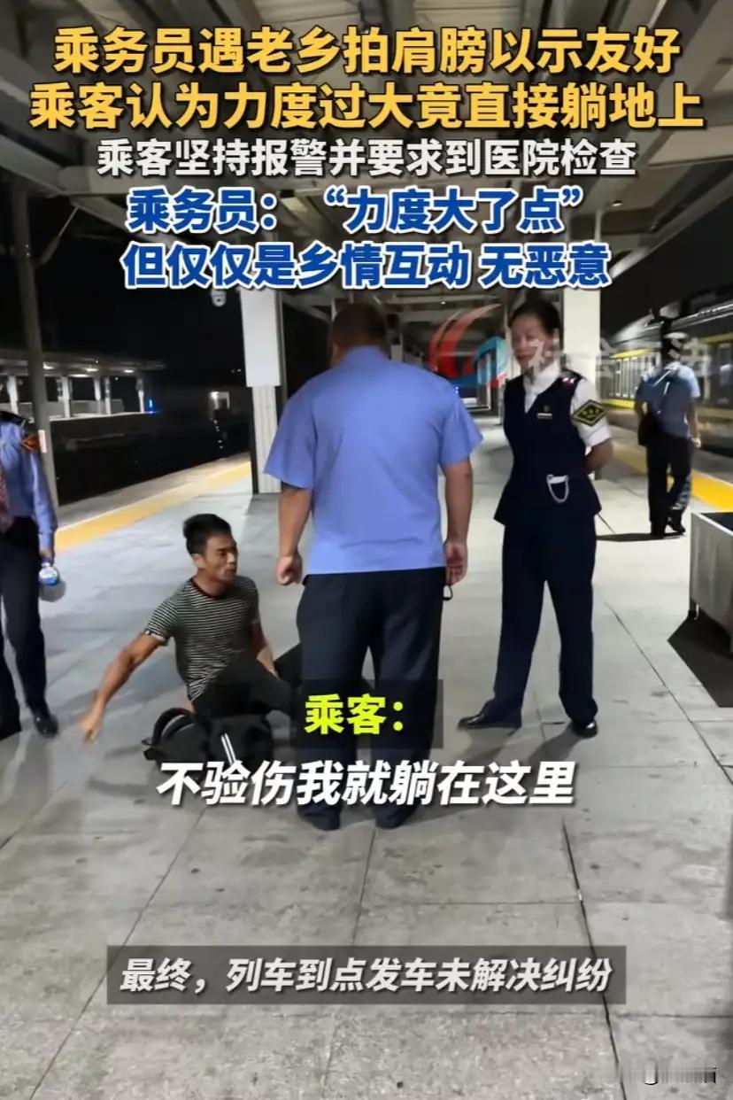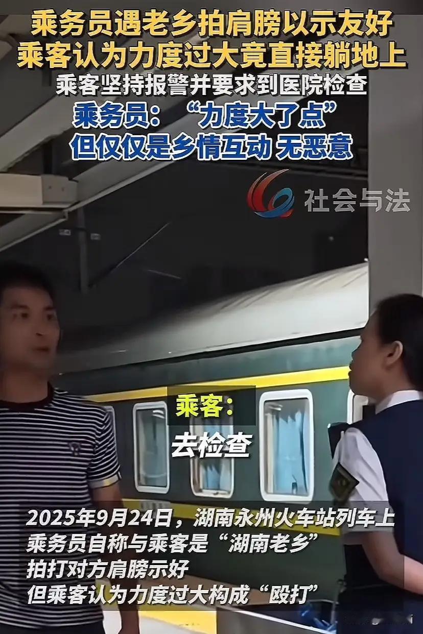 湖南永州,高铁上乘务员遇到老乡拍肩膀以示友好,乘客却认为力度太大,要求上医院验伤