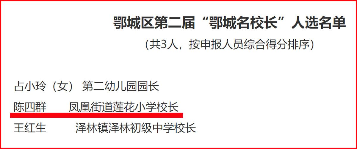 陈四群是湖北鄂州市鄂城区凤凰街道司徒小学的校长,2024年鄂城区评选第二届鄂城名