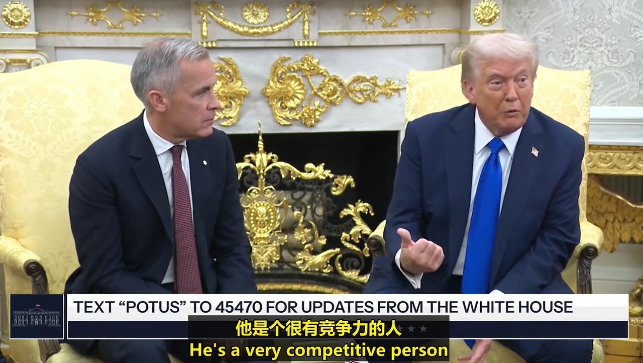 吃完晚饭没事,就看了下Trump和加拿大总理卡尼在白宫会见记者的视频,结果最后