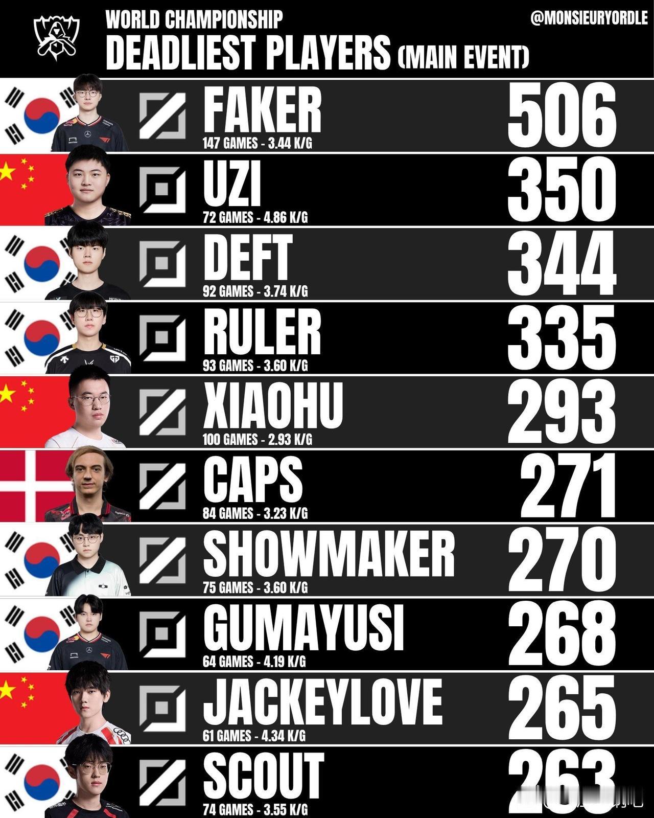拳头发布世界赛击杀排名,污渍竟然杀了这么多