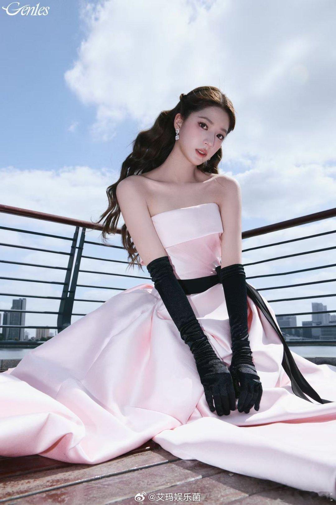 欧阳娣娣看得出她是公主 粉色抹胸长裙配黑色长手套太绝!温柔卷发衬得她优雅又灵动,蓝天白云下宛如童话里的公主,精致妆容和灵动眼神,每一帧都散发着贵族气质,这颜值气质真的太优越了!