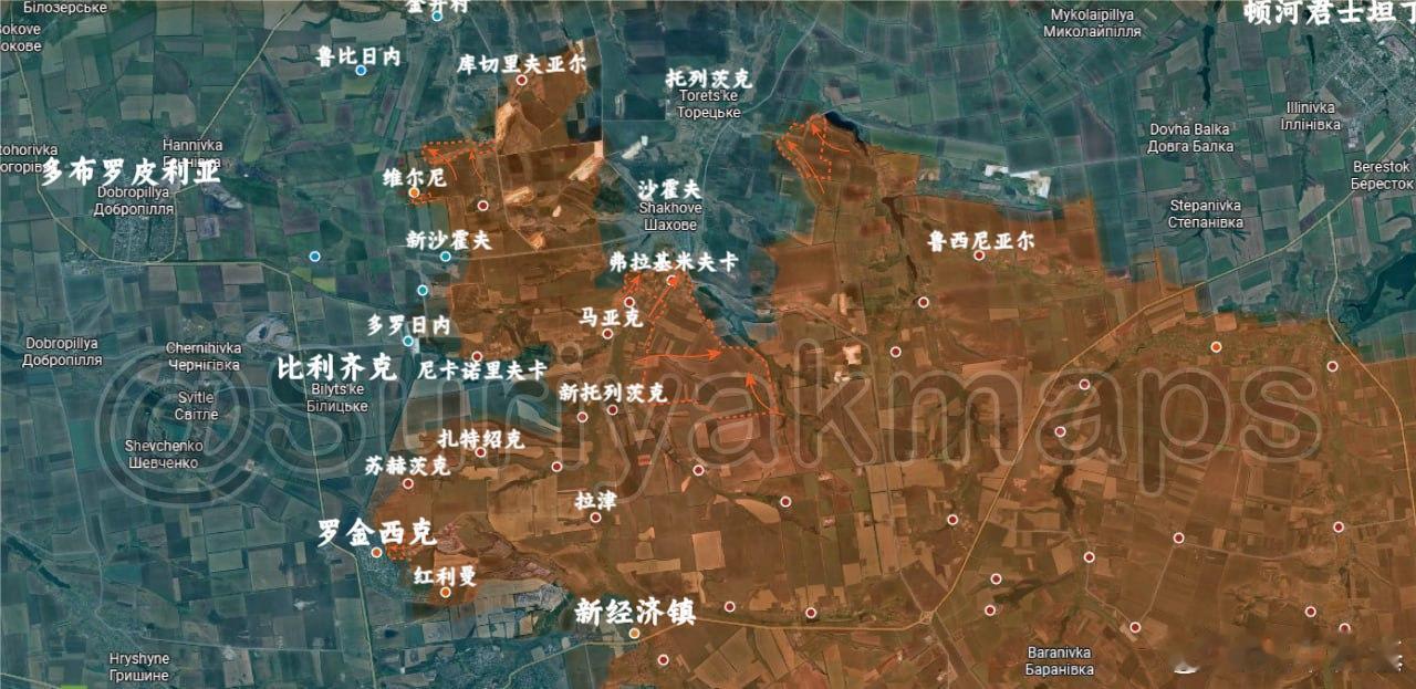 珊瑚变柱子!10月8日俄军在多布罗皮利亚方向取得重大进展,俄海军步兵部队控制了弗拉基米夫卡巩固了多布罗皮利亚突出部 10月8日俄海军步兵部队突破了乌军在卡泽尼托列茨河沿岸及新托列茨克以北的防御,完全控制了弗拉基米里夫卡及其东南的一系列阵地。此外,俄军第51集团军部队巩固了索菲夫卡以东的战果,并继续在维尔尼向西推进,还成功重新攻入了罗金西克。俄军在多布罗皮利亚突出部再也不是摇摇欲坠的珊瑚状了,此举一下巩固住了多布罗皮利亚突出部,俄军第51集团军可以放心向朝多布罗皮利亚方向发起进攻,不用担心补给线被切断了。