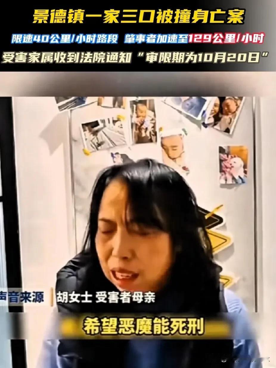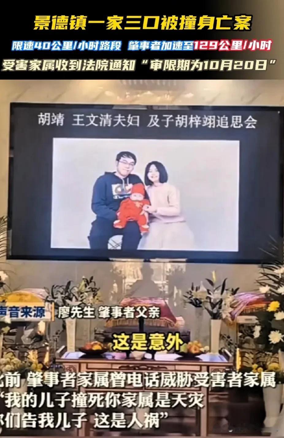 “太炸裂了”!江西,一家三口被撞身亡,肇事方提出想用养老来赎罪,同意赔偿80万,逝者家属回应:绝不和解。 无论何时,你的坏情绪,都不能成为伤害别人的理由。 2024年10月2日的傍晚,江西景德镇一场突如其来的惨剧,让一家三口遭遇“团灭”。 事发时间是晚上6时40分,20岁的廖某某因与女友发生争执,竟将方向盘变成了宣泄情绪的工具。 他驾驶着一辆刚买来5天的新特拉斯,以128.9千米/小时的速度在大街上疾驰,全然不顾道路上的行人生死。 当轿车冲向人群时,正抱着不满周岁儿子、准备过马路去母亲家吃晚饭的胡某某夫妇,连躲闪的机会都没有。 一声刺耳的撞击声后,将三条鲜活的生命,瞬间拖入了另一个世界。 事故现场的画面,成为孩子奶奶胡女士余生都无法摆脱的噩梦。 “我的小孙子那么活泼可爱,才不满周岁,他还来不及喊我一声奶奶啊!” 据胡奶奶描述,她后来从路人拍摄的视频里看到,廖某某下车后第一反应不是查看被撞者的伤势,而是绕着车子检查车况。 随后又转身将副驾的女友扶下车,全程对倒在血泊中的三人视若无睹。 更让人心寒的是,他甚至站在车旁点燃了一支烟,神情淡漠得仿佛刚才发生的只是一场无关紧要的意外。 最终,还是周围的群众看不下去,纷纷掏出手机报警、联系急救。 可一切都为时已晚——胡某某当场殒命,妻子王某某经现场抢救无效离世。 那个尚在襁褓中、连“奶奶”都还没学会喊的幼童被紧急送往医院后,也没能熬过那个夜晚。 这场“灭门”之痛,对胡家而言是毁灭性的打击。 胡某某与王某某都是家中独子,他们的离去,意味着两个家庭同时失去了唯一的孩子。 也让两边的老人一夜之间坠入“白发人送黑发人”的深渊。 事故发生后,胡女士和老伴再也没笑过,曾经热闹的家里只剩下死寂,两人因此患上重度抑郁症。 胡女士的耳边总反复回响着救护车的鸣笛声,还有殡仪馆里那首撕心裂肺的哀乐。 每到深夜,失眠便成了常态,闭上眼睛就是儿子儿媳挣扎着喊“救命”的模样,还有孙子那双清澈的大眼睛,直勾勾地望着她。 最让胡女士难受的是儿媳“托梦”说,想吃她包的雪菜肉沫包子。 在孙子满358天、本该筹备两周岁生日的那天,胡女士亲手包了一大笼包子。 又强打精神跑去蛋糕店,买下个小小的奶油蛋糕,一同去看望儿子一家三口。 事发后,肇事者廖某某的父亲通过社交平台发声:“儿子的车刚买五天,实际开的时间不超过一天半,是我没教好他,我有原罪。” 随后,他又通过中间人向胡家传递“解决方案”,愿意赔偿80万元,甚至提出“让廖某某在胡女士身边尽孝,为自己赎清罪孽。 对此,胡女士回应称,80万想换三条人命?换儿子儿媳本该有的漫长人生?换孙子还没来得及体验的童年?现实吗? 更何况,让一个“仇人”来养老,每天面对那个摧毁自己家庭的人,看着他的脸,再想起逝去的亲人? 岂不是在往自己和老伴的伤口撒盐? 胡女士拒绝赔偿:“我不要钱,我只要他得到应有的惩罚,我要给我的儿子、儿媳、孙子一个交代!” 对方所谓的“尽孝”,会不会对生者造成二次伤害?网友们炸开了锅。 有人直言“80万太少了”:“三条人命,尤其是两个独子和一个婴儿,后续的精神损失、家庭破碎的代价,远不是80万能衡量的。” 更多人对“养老赎罪”的提议无法认同:“真正的赎罪,是正视自己的错误,肇事者会真心给俩养老吗?会不会连自己父母都不一定赡养?” 一场突如其来的悲剧,直接导致两个家庭的破碎,再次何我们印证了,坏情绪永远不能成为伤害他人的借口。 一时的冲动,便要用无数人的余生来买单,这样的代价太过沉重了。 这场悲剧更像是一面镜子,映照出情绪失控带来的可怕后果,也提醒着每一个人,生命只有一次,无论是自己的还是他人的,都值得被敬畏。 三条人命,是无论多少钱也换不回来的啊! 提醒大家在任何时候,都要对生命充满敬畏,因为有些错误一旦犯下,就再也没有弥补的机会。 相信法律是公平公正的,一定会为胡女士讨回公道。 你怎么看对方提出的“养老赎罪”? 内容来源于:《山西都市报》《风芒新闻》 一家3口被撞身亡 肇事方提出养老赎罪