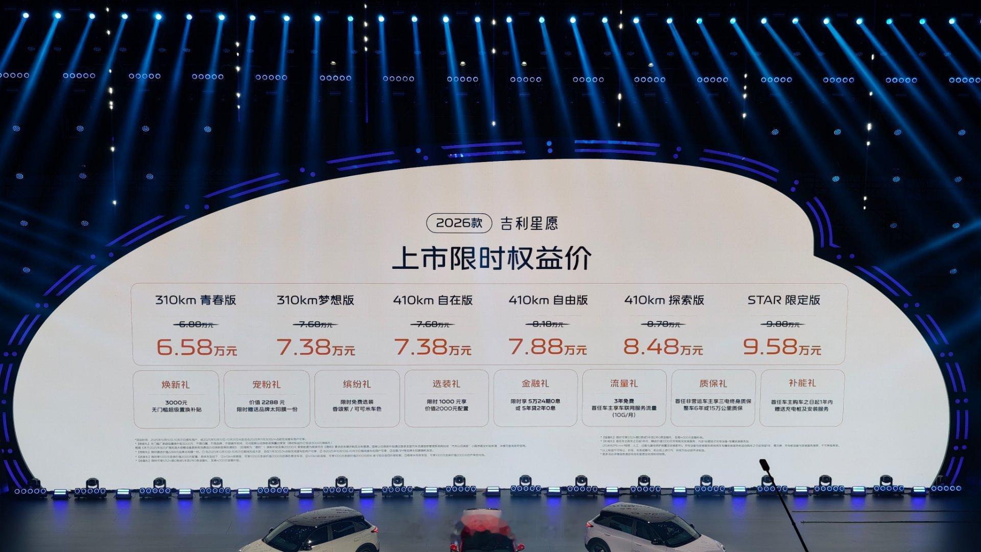 吉利星愿2026款上市,原以为这只是一台卖的比较好的小车,但万万没想到,这台车已经卖了这么多,光九月份就销量超过五万台。我也发现一个特点,如今的小车卷的最恨就是空间,就这么一台A0级的小车,能掏出70升的前备箱,加375升后备箱,同时还是一台后驱独立悬挂的性能小车。就这样一台小车还采用了宁德时代的电池,所以卖的好那是买家识货,卖家靠谱的双向奔赴。2026款吉利星愿上市310公里版6.58万元起,410公里版7.38万元起,此外还有9.58万元的限定版。小车卷出新高度,吉利星愿,兄弟们冲不冲?张柏芝任贤齐世纪同框2025吉利汽车用户大会吉利星愿 2026款吉利星愿全球上市 2026款吉利星愿6.58万元起