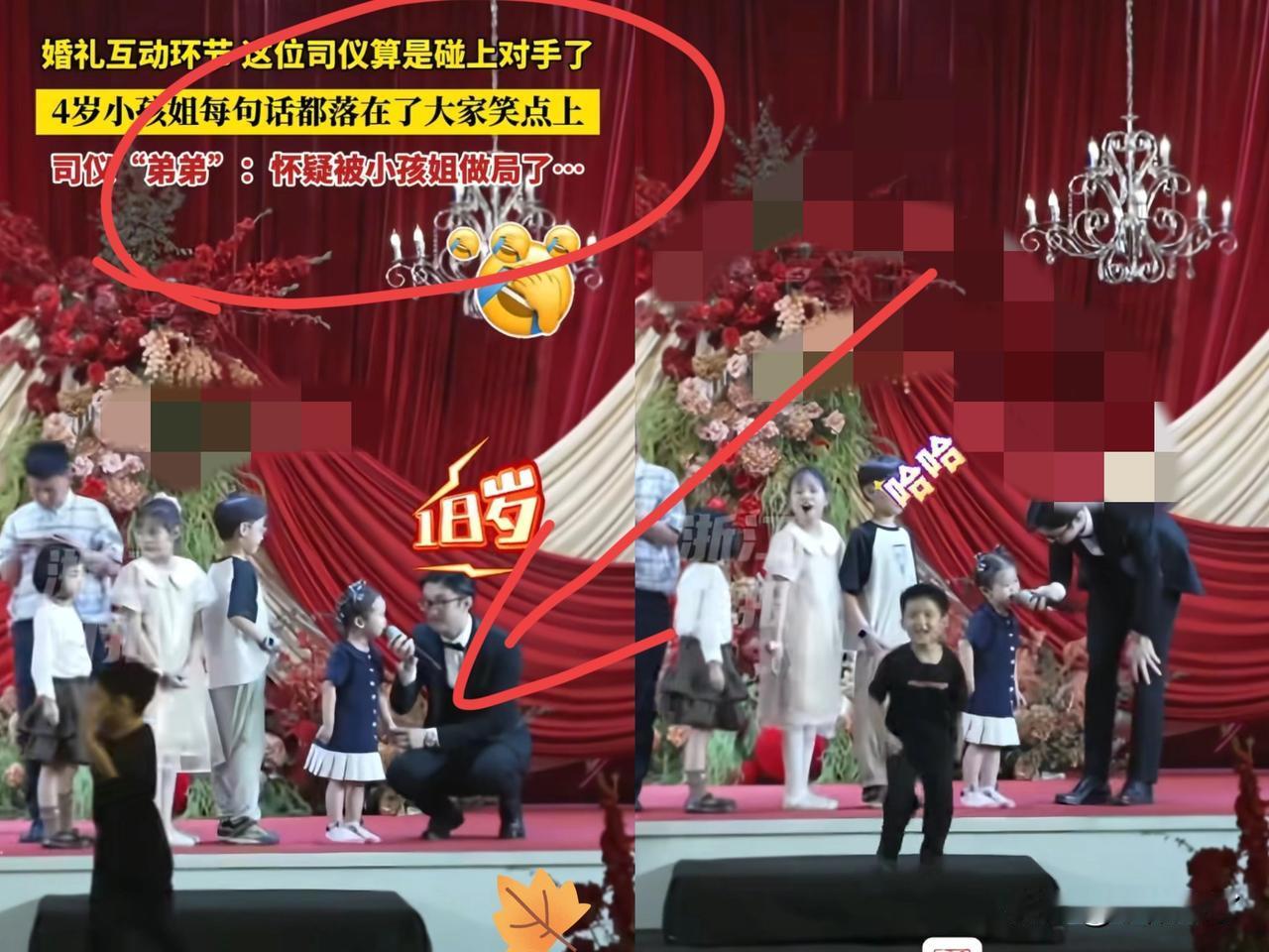 “总算碰上对手了!”江苏某婚礼互动环节,司仪本想活跃下气氛,4岁小孩姐直接把司仪