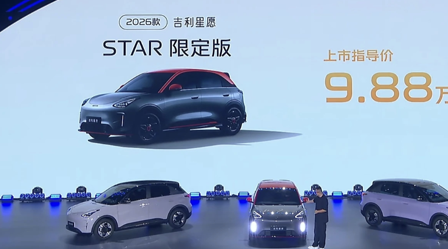 趁着这个热度,2026 款吉利星愿纯电小车正式上市,限时权益价 6.58-9.58 万元。