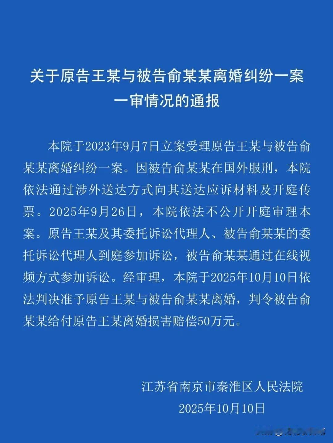 朋友们,大快人心呀! 王暖暖离婚案刚刚宣判, 两个消息,一个解气到拍桌,一个现实到扎心! 好消息是等了6年终于判离了!俞晓冬不仅一分财产没捞着,还因蓄意杀人的重大过错被判赔50万,这可是法律实打实的惩戒。 坏消息是这钱大概率是张“白条”——他在泰国要坐33年牢,之前泰国法院判的百万赔偿就一分没给过。 但谁还在乎这50万?对被推下34米悬崖、全身17处骨折的王暖暖来说,斩断这根缠了6年的“毒藤”才最金贵。 俞家早前索要3000万离婚费、逼她写谅解书的嘴脸,早把“无赖”二字刻在脸上了。这场胜诉哪只是个人解脱,更是我国首例境外服刑人员离婚案的标杆。 这件事它明明白白告诉我们,哪怕恶人躲到国外,法律照样能还你公道。对付这种婚姻里的恶魔,就该像王暖暖这样硬刚到底,大家说对吧?