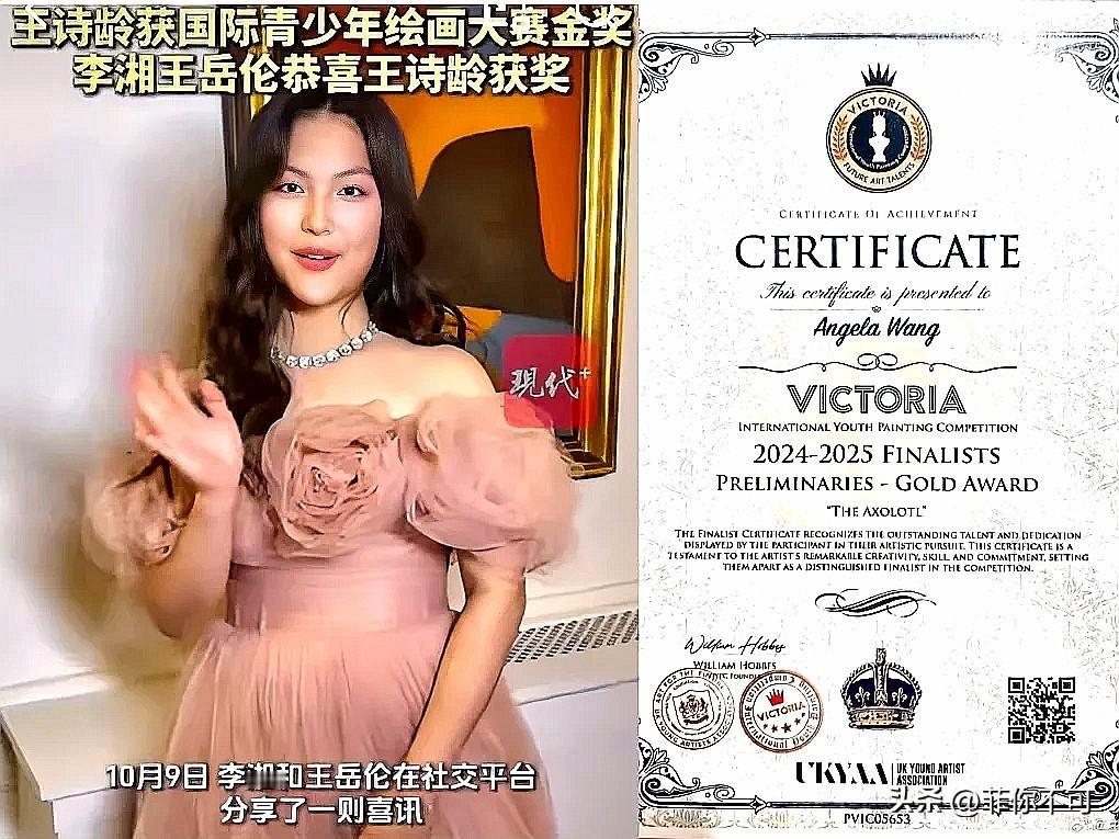 这才几天啊,李湘娘俩口碑就反转了。看来自己种的瓜,还得自己解。 照片事件还没几天,王诗龄就拿了绘画大赛金奖,李湘王岳伦发消息夸闺女,这事在网上还挺热闹。 她画的《花园》得了国际金奖,还在法国卢浮宫、斯万城堡巡展,别说小孩了,就是大人有几个能做到的。 李湘王岳伦平时疼闺女,估计在艺术培养上花了不少心思,从学画到参赛,得费多少精力啊。 小时候看她上《爸爸去哪儿》软萌软萌的,现在在英国读书,又能拿国际大奖,真的感觉变化太大了。 都说艺术要天赋,她爷爷是有名的画家,跟着吴冠中、卫天霖学过,这基因可能也有遗传,再加上有这么优秀的父母,想不优秀都难啊。 你说现在的的王诗龄,有天赋有资源还肯努力,这奖拿得是不是实至名归?