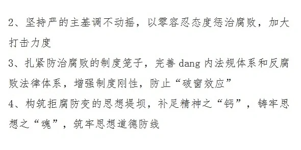 3、扎紧防治腐败的制度笼子,完善dang内法规体系和反腐败法律体系,增强制度刚性,防止“破窗效应”
