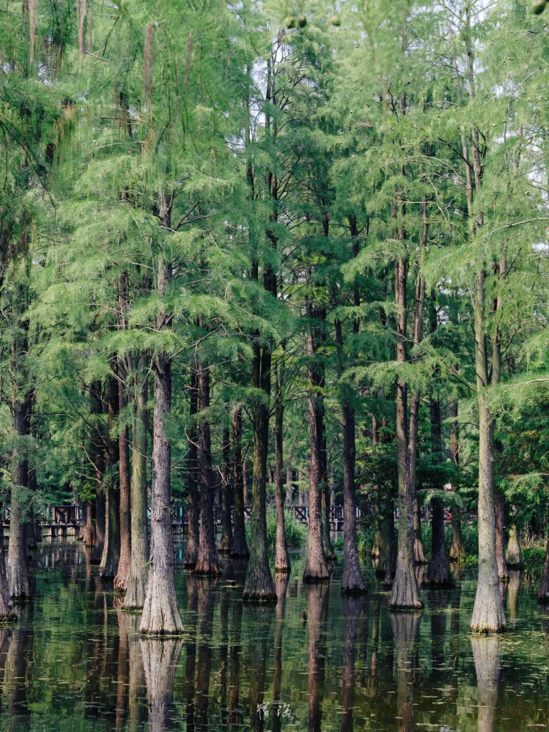 青西郊野公园面积很大,里面有巨大的荷花池、村庄、农田,但最出片的核心区只有一小部分,就是📍水上森林。