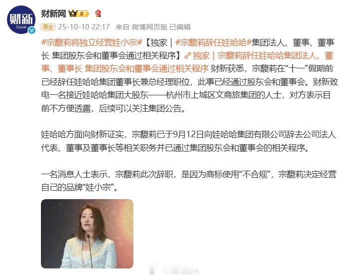 宗馥莉已经辞职宗馥莉将独立经营娃小宗