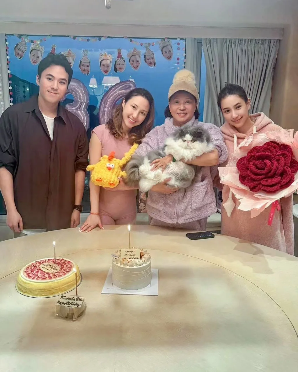 何超莲前日(1日)更新社媒,以《双鱼宝宝们生日快乐》为题发帖,并贴出5张新照片。首先是为姐姐何超云庆祝36岁生日的照片,何超莲和弟弟何猷启分别穿上家居休闲服,而寿星何超云就穿上粉红色套装,显得明艳照人。
