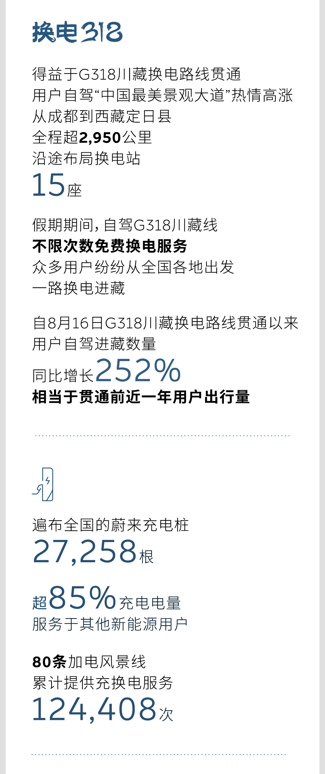 所以,加电报告里的数据:“8月16日川藏换电线路贯通以来,用户进藏数量同比增长252%,相当于过去近一年的量”,真实地反映了换电站对于蔚来/乐道用户出行选择的影响。