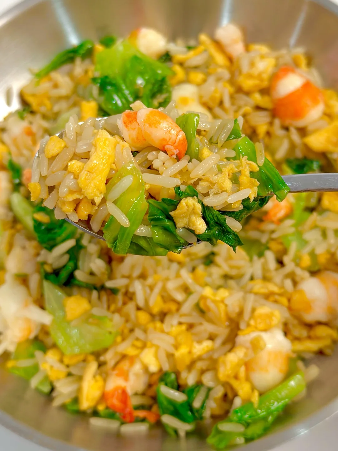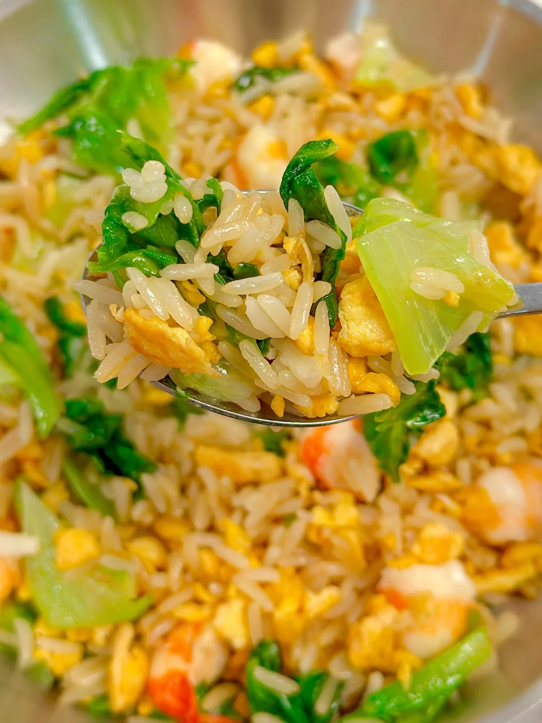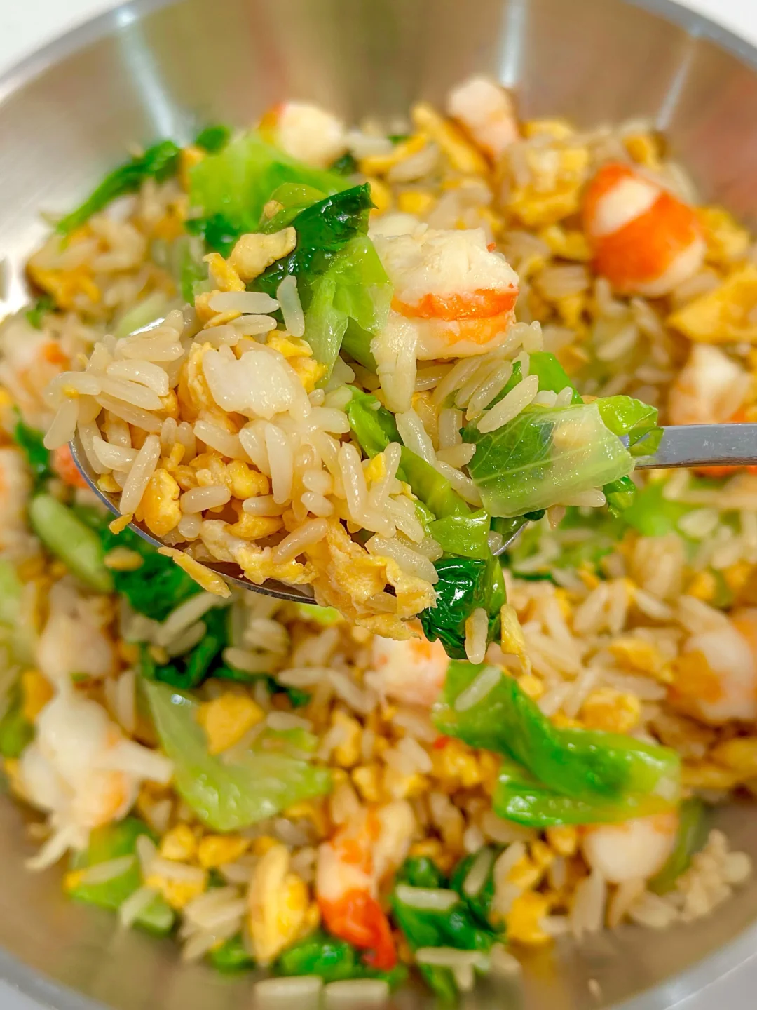 分享巨干净巨好吃的虾仁鸡蛋生菜炒饭!真的非常好吃!而且吃完巨饱腹!减脂期偶尔来一份绝了!做法也非常简单!