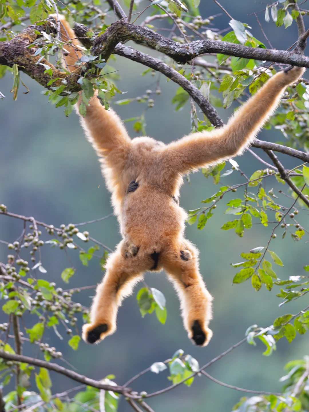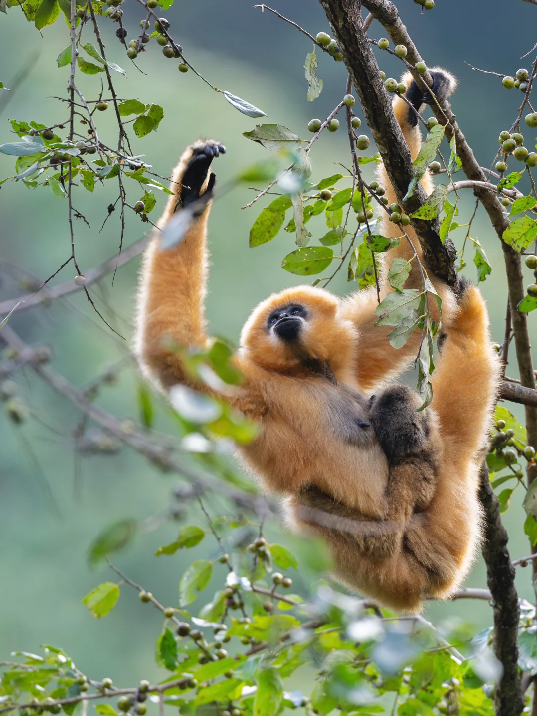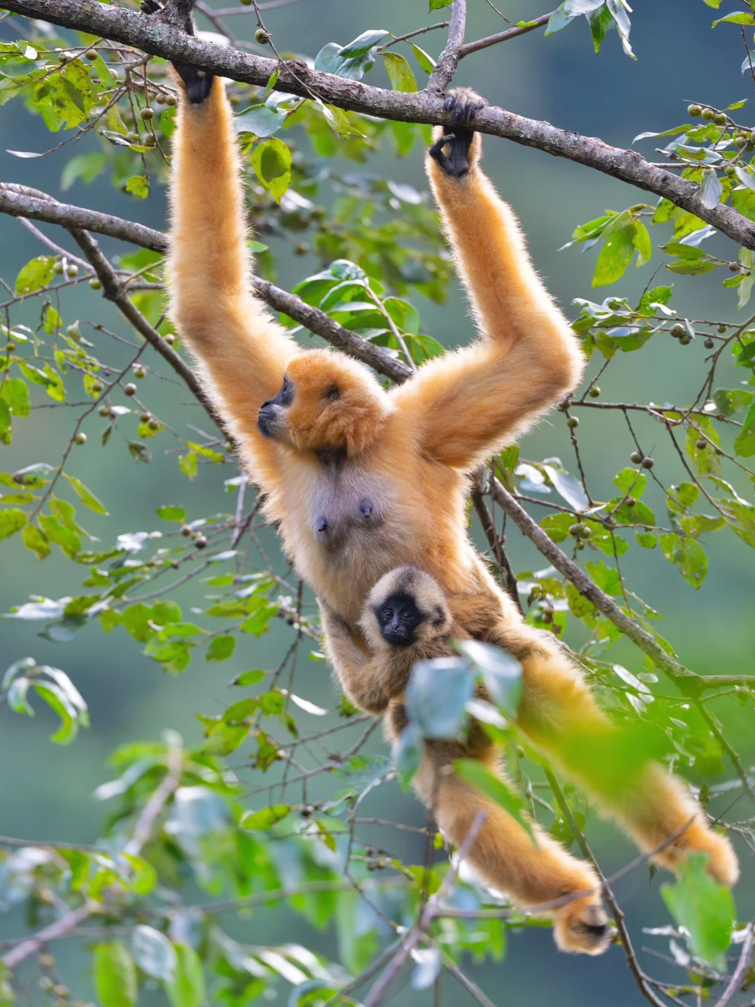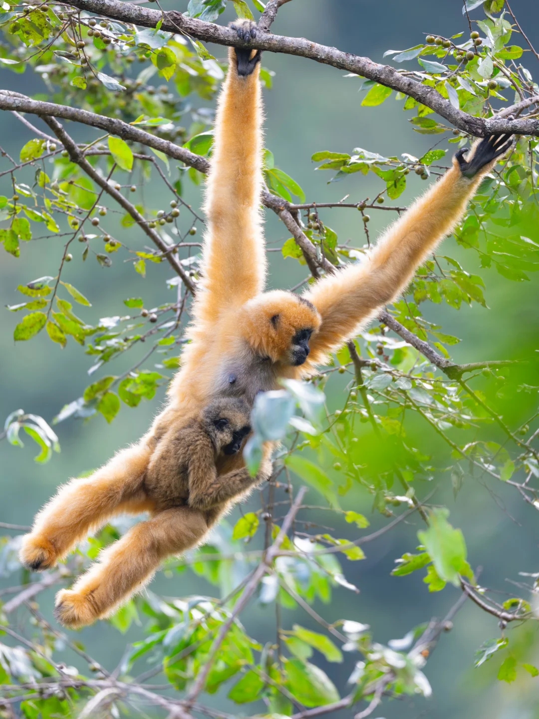 幸运的是,这只雌猿怀里竟然还有一只猿宝[哇R]看着猿妈带着孩子在林间自在“飞行”,真的太治愈了,我哭死,它们就是山中的精灵啊!