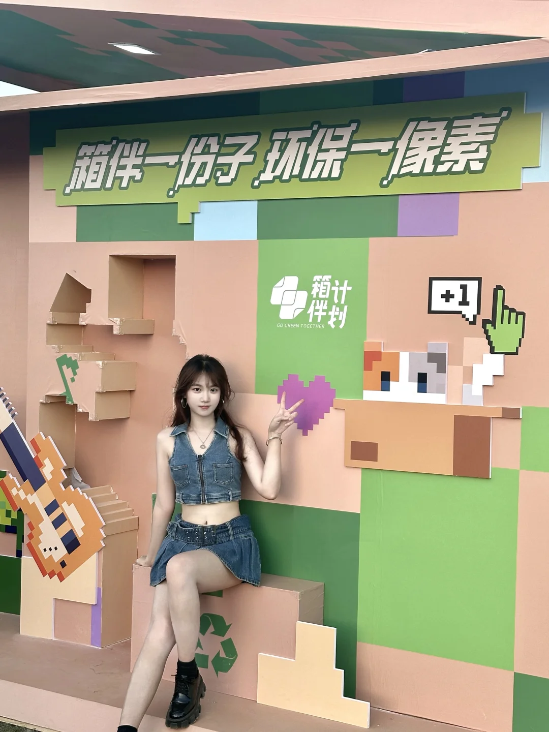 中途逛市集的时候还发现了巨大的顺丰快递箱,走进去一看原来是顺丰的【箱伴计划】快闪,像素装置看起来超有趣,而且很出片。