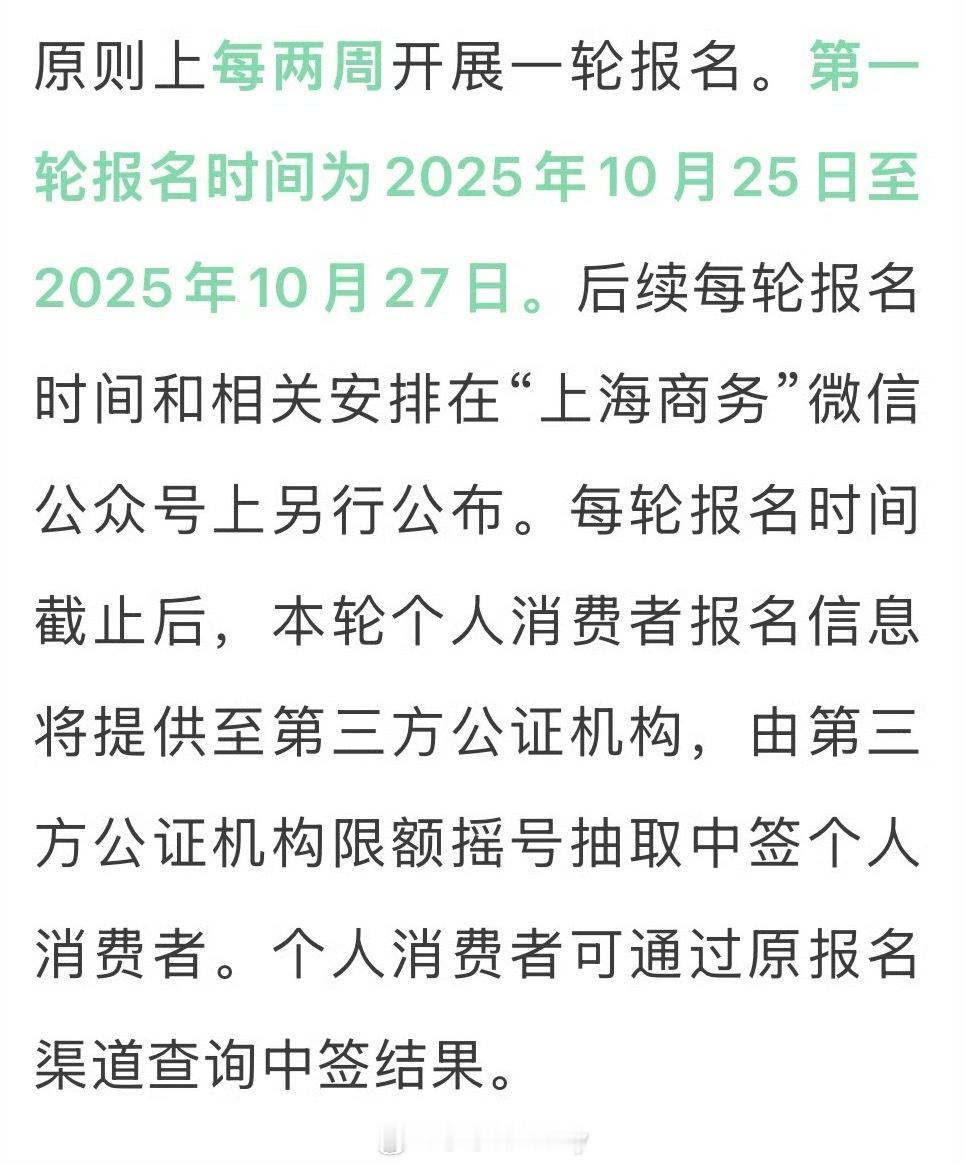 以旧换新补贴要摇号了,摇中才有补贴,每两周一次。