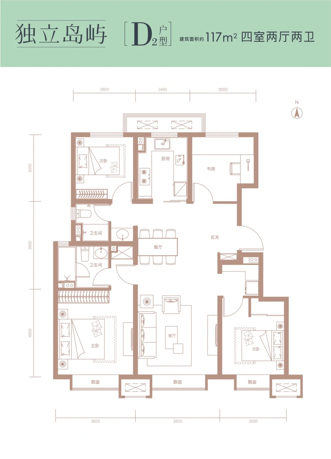 [拔草R]最大户型117㎡四居,贴心地设计了四叶草户型,私密感拉满。