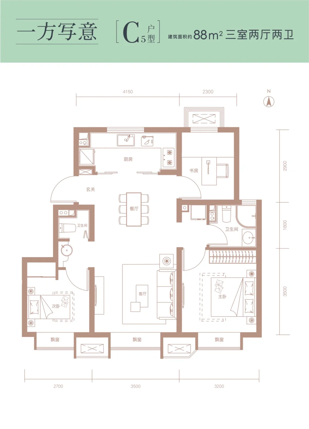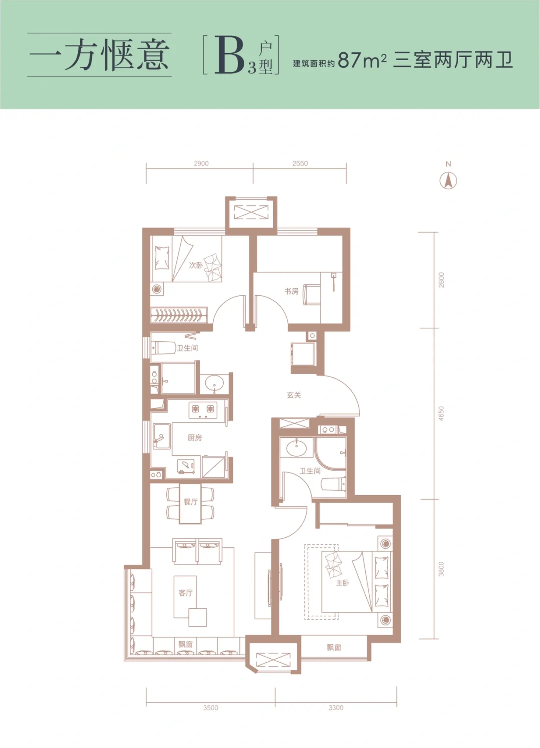 [拔草R]88㎡小三居做到了三面宽,北侧厨房面宽达4.15m,整个LDK区域非常通透。