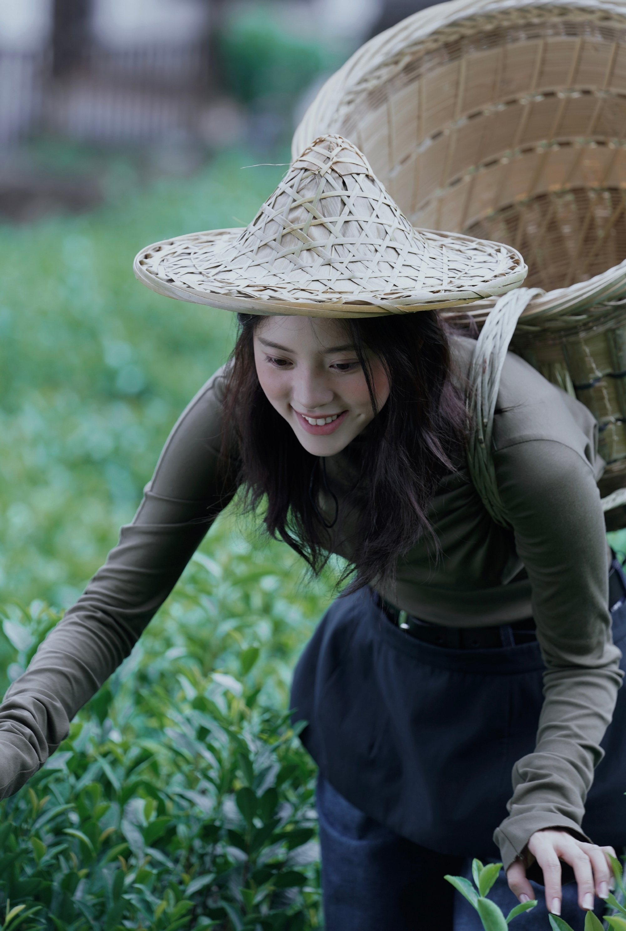 欧阳娜娜小背篓,晃悠悠,斗笠一戴化身采茶叶的小姑娘