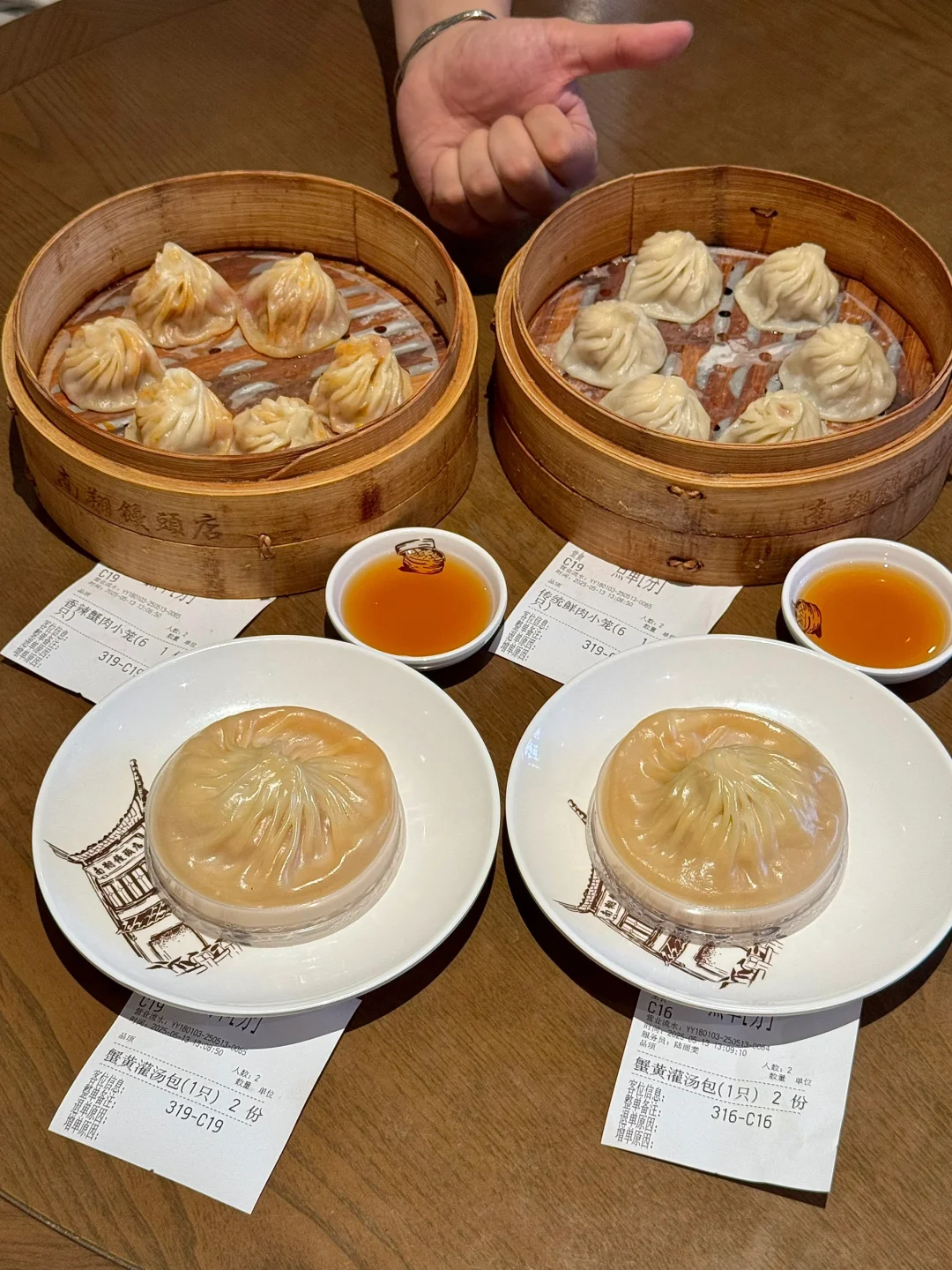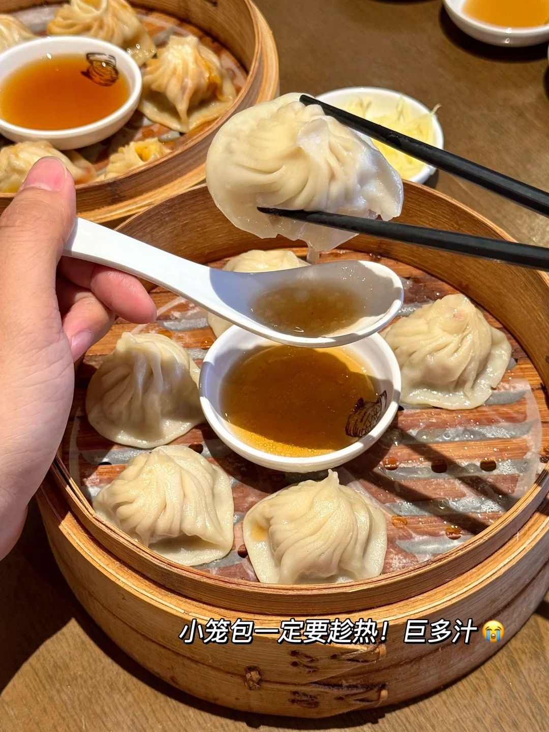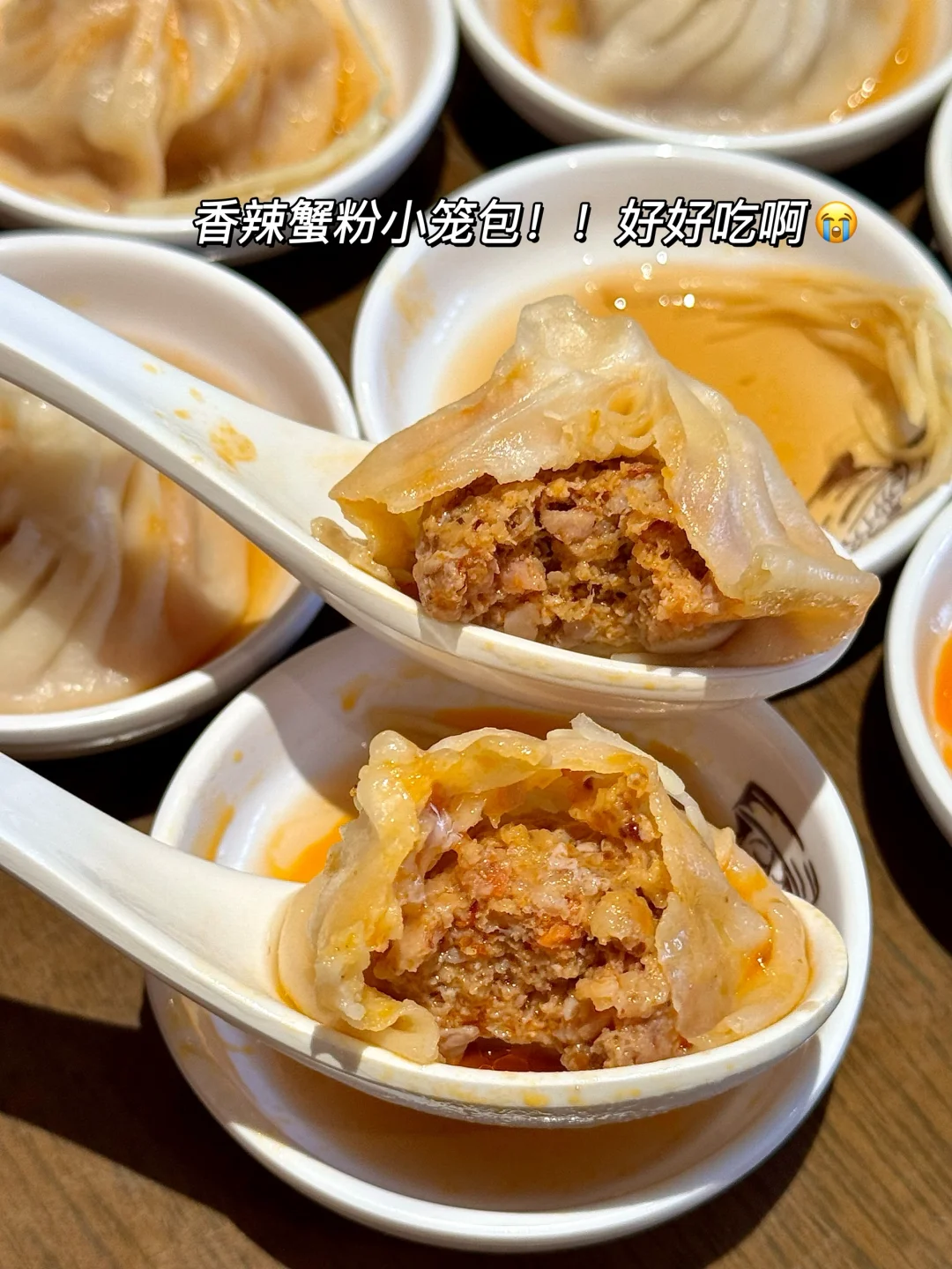 啊啊啊成都终于有了!非遗小笼老字号!现包现蒸料巨多~就在天府广场!叫南翔馒头店)鲜肉小笼包真的好好吃😭一口下去满嘴留香全是肉汁!朋友点的蟹黄汤包!很大一个,皮薄馅多~可以用吸管先喝汤 不夸张!店里还有一些上海小炒菜和小食,一人二人吃都很合适🤤