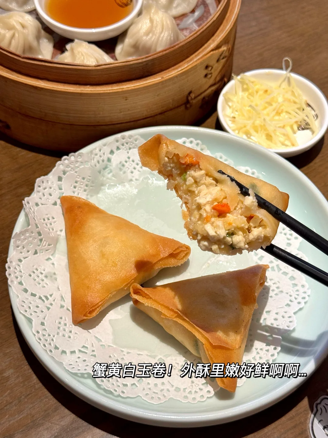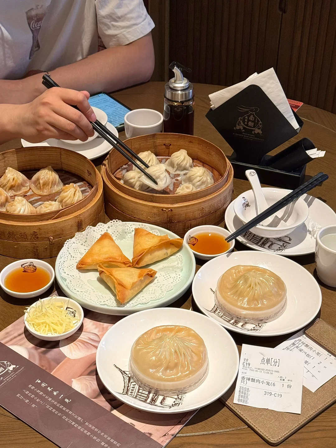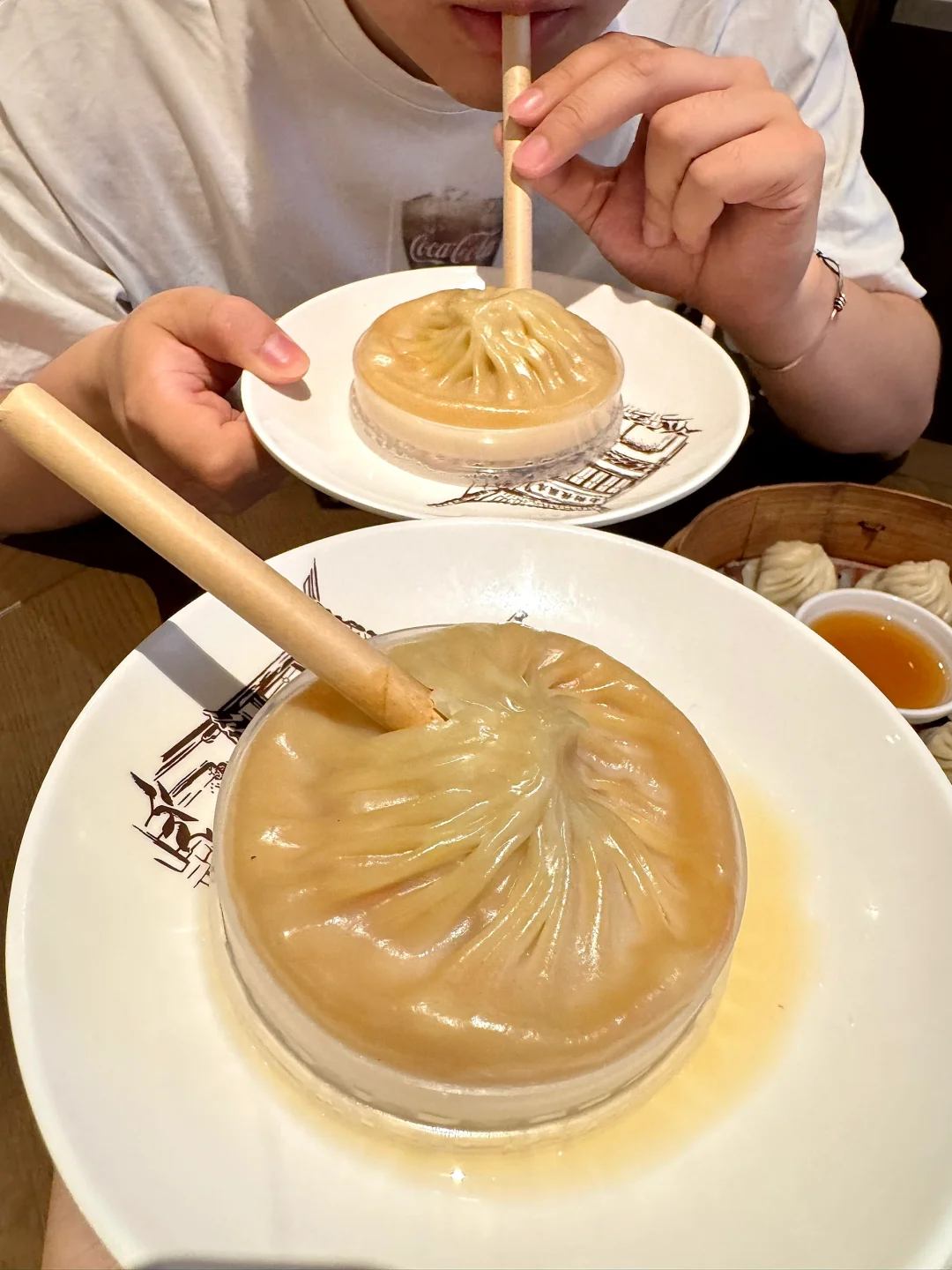 啊啊啊成都终于有了!非遗小笼老字号!现包现蒸料巨多~就在天府广场!叫南翔馒头店)鲜肉小笼包真的好好吃😭一口下去满嘴留香全是肉汁!朋友点的蟹黄汤包!很大一个,皮薄馅多~可以用吸管先喝汤 不夸张!店里还有一些上海小炒菜和小食,一人二人吃都很合适🤤