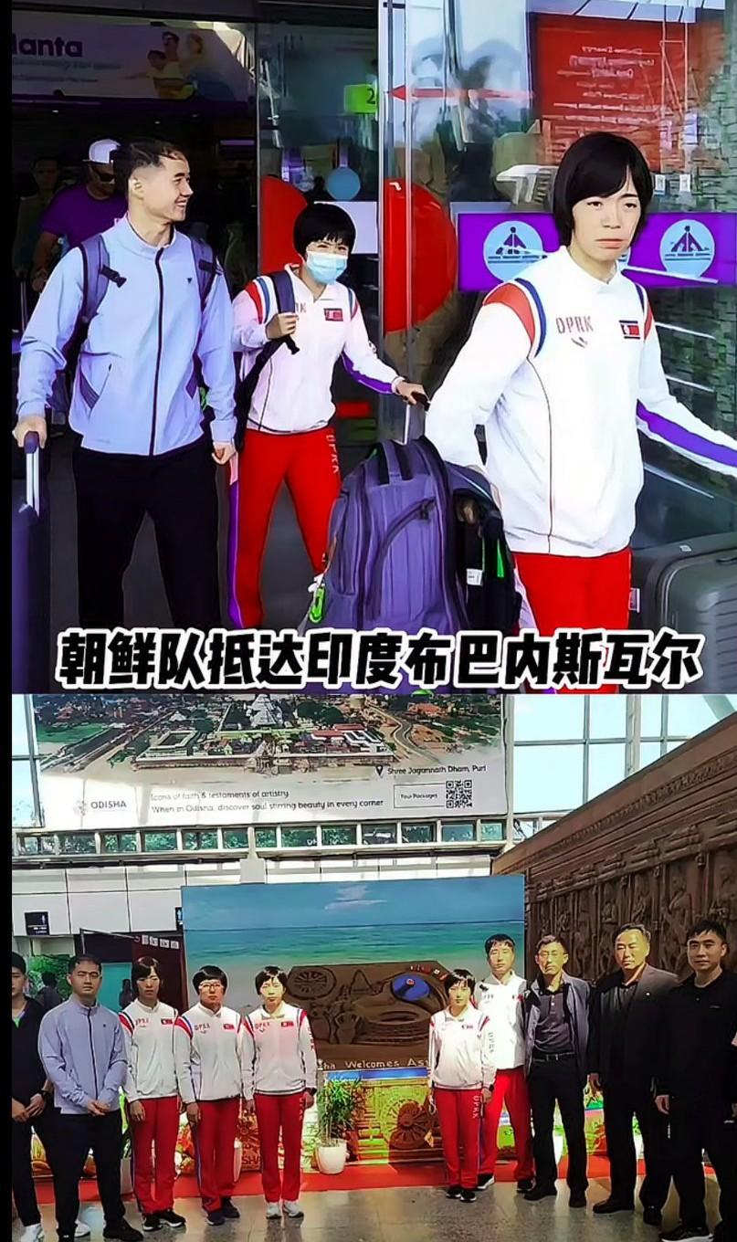 朝鲜队抵达印度布巴内斯瓦尔 朝鲜运动员金琴英与男队友一起参加印度比赛,预计他们