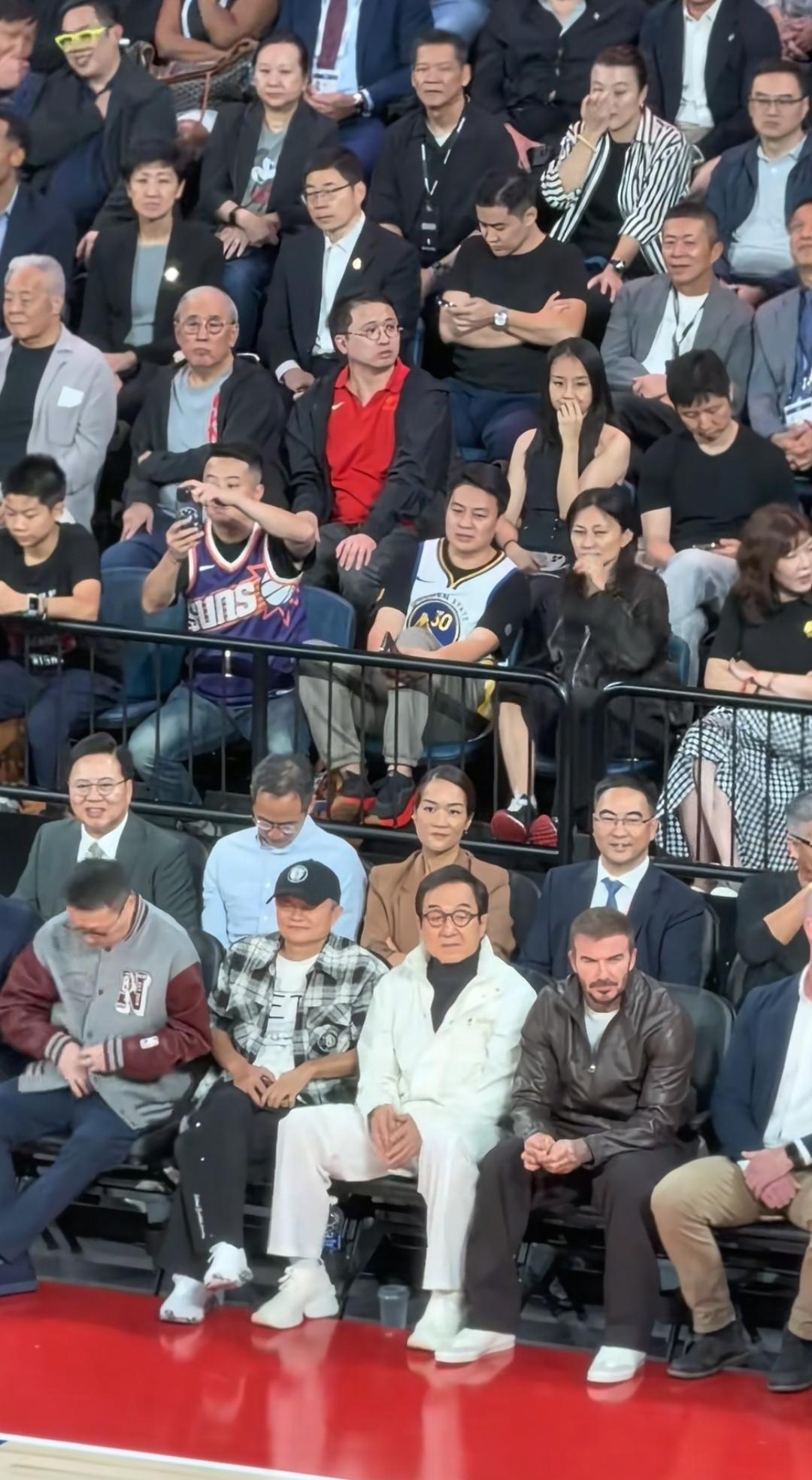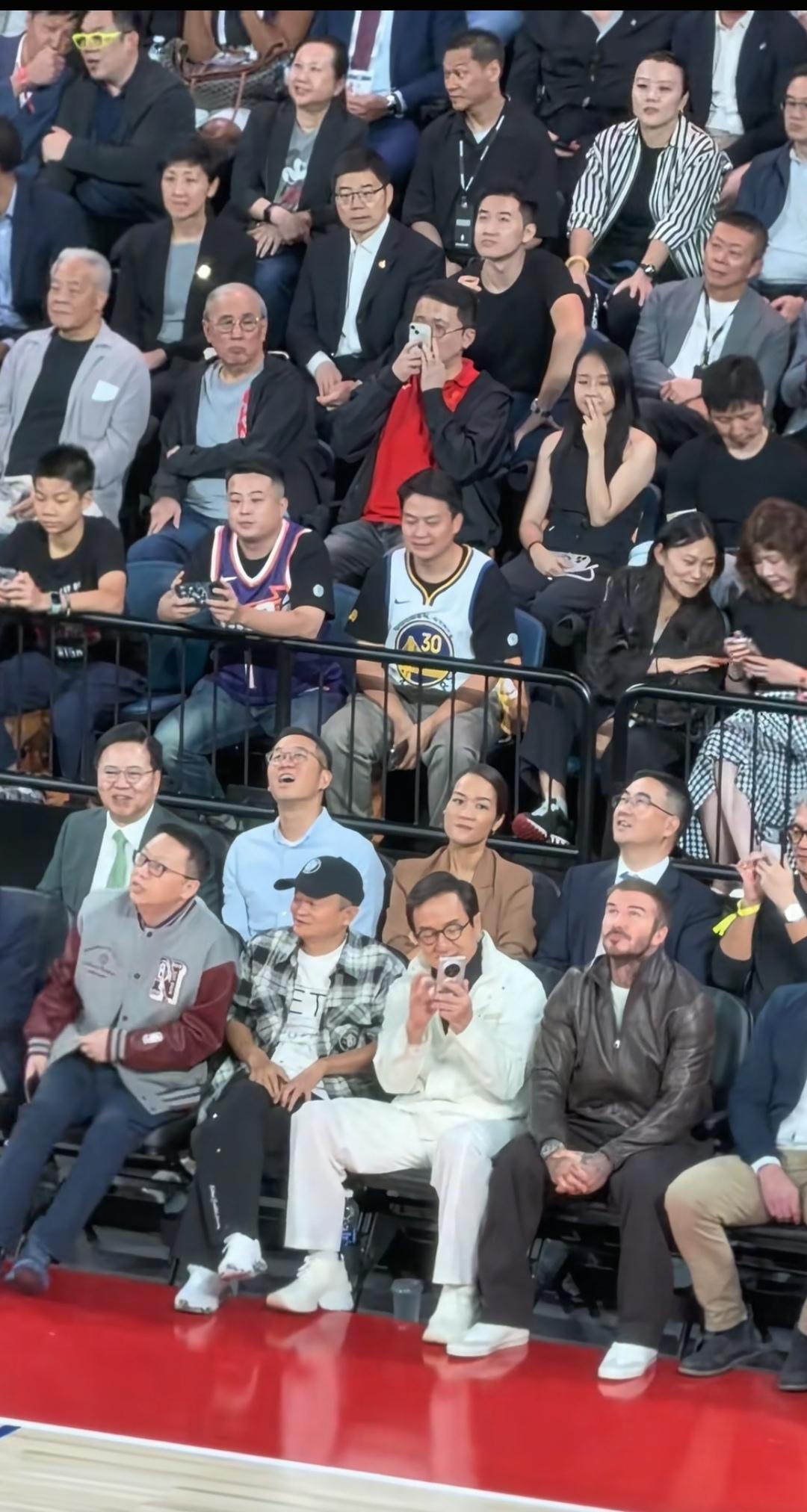 马云清闲了, 专程到澳门看NBA, 过上了退休自在生活。 旁边坐着的是国际巨星成龙, 马云和成龙两人坐在一起, 这种同框还是比较罕见的。