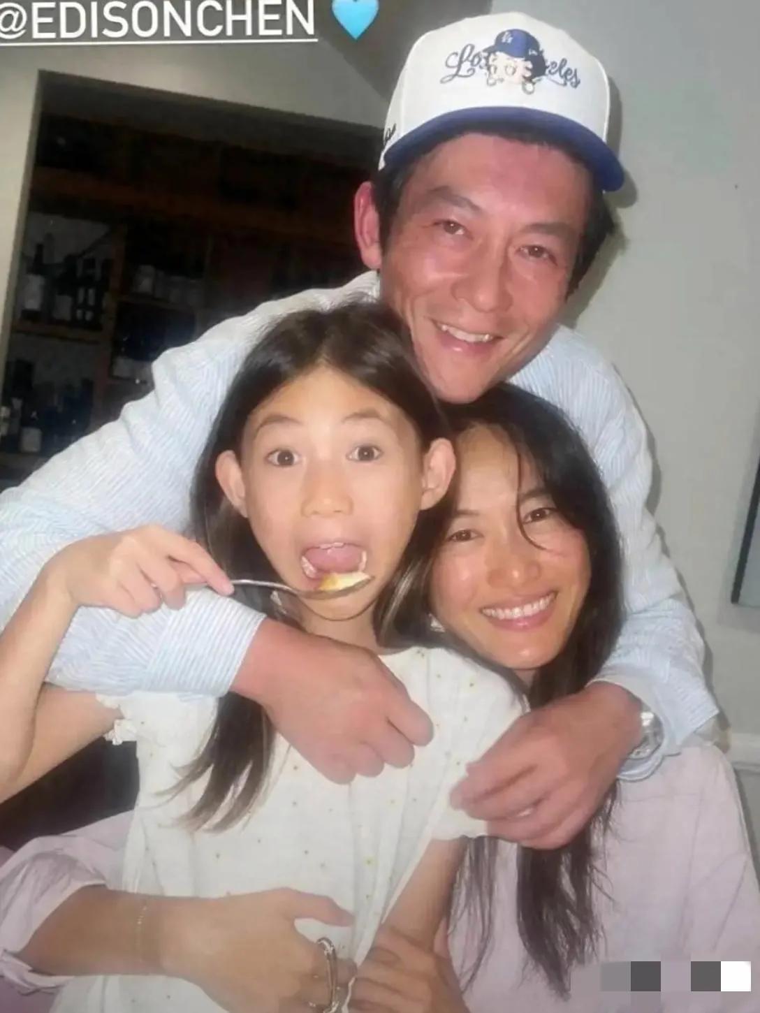 陈冠希一家三口:陈冠希面色红润,脸型狭长,眼周的皱纹残忍地围困着曾会放电的双眸,牙齿参差,老态尽显,之前元气淋漓的生机宕然无存! 女儿秀发飘逸,张眉努眼,嘴巴大开,很会搞怪;妻子秦舒培长发垂肩,齿如珠贝,笑容灿烂,虽双腮染赤,但看着更显得村范儿足,你觉得呢?