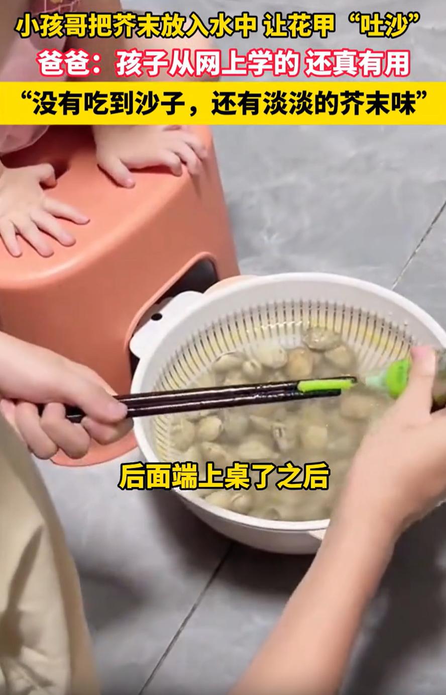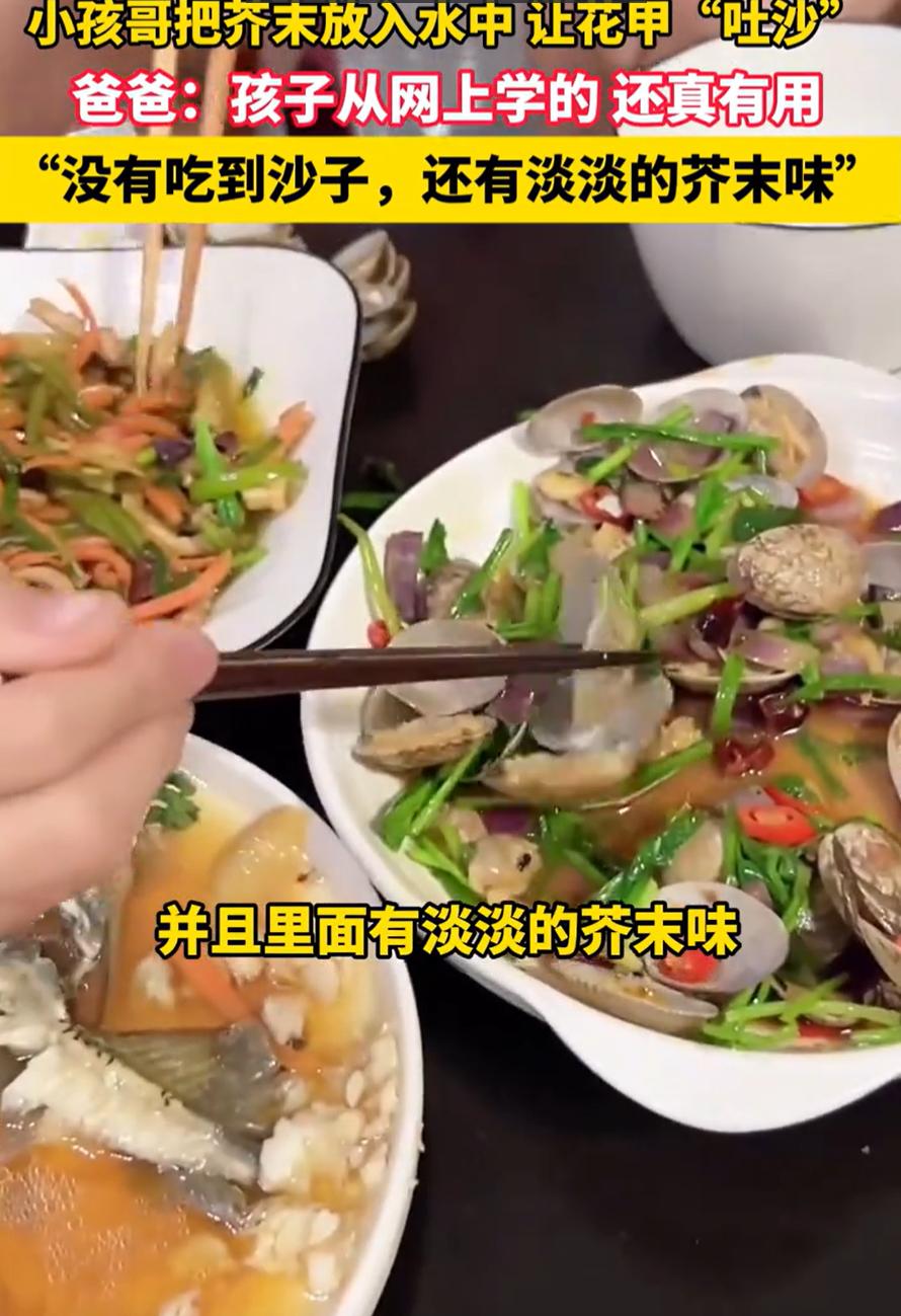 “奇怪的知识又增加了!”广东,一男子在市场买了些花甲准备晚上炒一下,可他唯独担心的就是里面有沙子会影响口感,而孩子看到后,直接将不少芥末倒了进去,结果还真的有效果,吃起来一点沙子都没有。网友:我为花甲发声 原来,男子买完花甲后就放到厨房用水泡起来,儿子看到后,突然想起之前在网上看的一个视频,说是用芥末可以让 “吐沙”,随后就找来芥末,倒在筷子上面伸入水中 起初男子也是半信半疑,虽然不清楚效果如何,但最起码也没有危害,就让孩子操作了,可当他晚上把花甲做好,效果真的出乎他的意料,不仅花甲里没有沙子,吃起来还有一股淡淡的芥末味,男子也是调侃:网上学的东西还真有用 有网友不理解,这是什么原理? 其实这背后原理不复杂,芥末的刺激性气味主要来自一种叫异硫氰酸烯丙酯的成分,它能让贝类产生应激反应,类似被“熏”到不舒服,就会主动张开壳,把体内的东西排出去,包括沙子和杂质。说白了,就是用刺激气味“逼”花甲清理自己 当然,这个方法虽然能起到一定效果,但也不能完全替代传统的吐沙方式。平时用盐水浸泡几小时,再加点油或铁器,依然是最稳妥的办法。芥末法适合临时应急,用多了反而可能让贝肉发苦 这事有意思的地方在于,孩子看视频学来的点子,居然真能派上用场。说明网络上的小妙招,也不是全没用,只要安全、科学,哪怕是半信半疑试一试,也可能带来意外惊喜