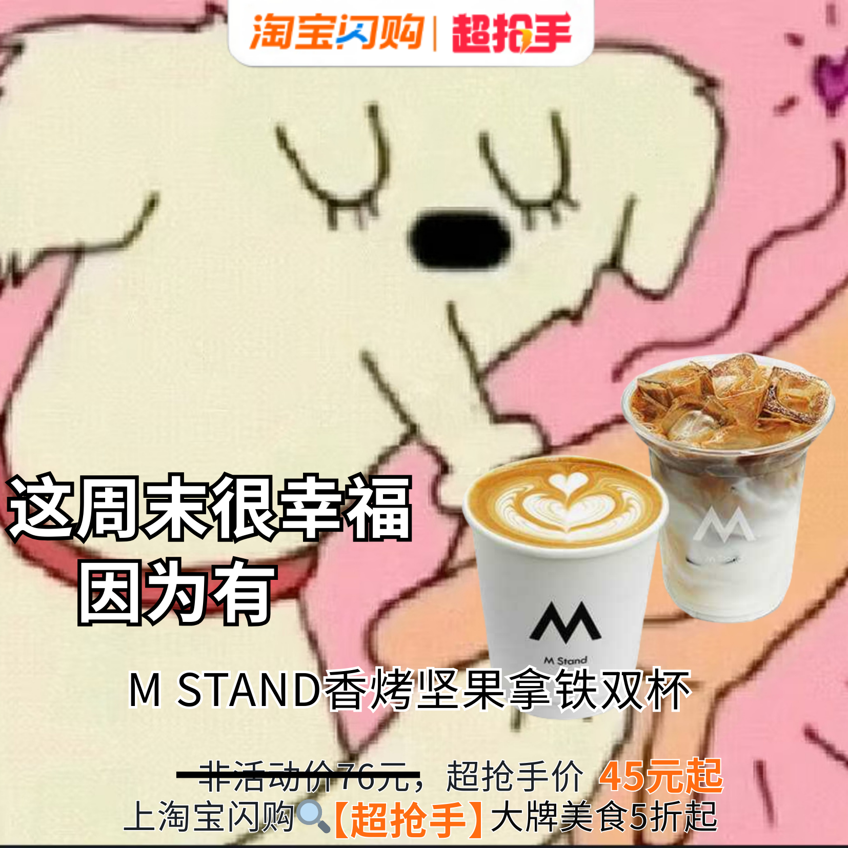 上班后我的早餐除了咖啡就是咖啡,今天早起赶地铁前,顺手刷了淘宝闪购超抢手,发现大杯瑞幸咖啡的生椰拿铁竟然才9.9元起,我之前怎么没买到这么划算的价格?像M STAND的香烤坚果拿铁双杯才45元起!上淘宝闪购搜【超抢手】,大牌美食5折起,奶茶咖啡9.9元起,我火速在淘宝闪购超抢手下单了,到公司刚好能喝,终于找回工作日的满满元气!周末上淘宝闪购吃点好的马思纯陪你补班上淘宝闪购超抢手