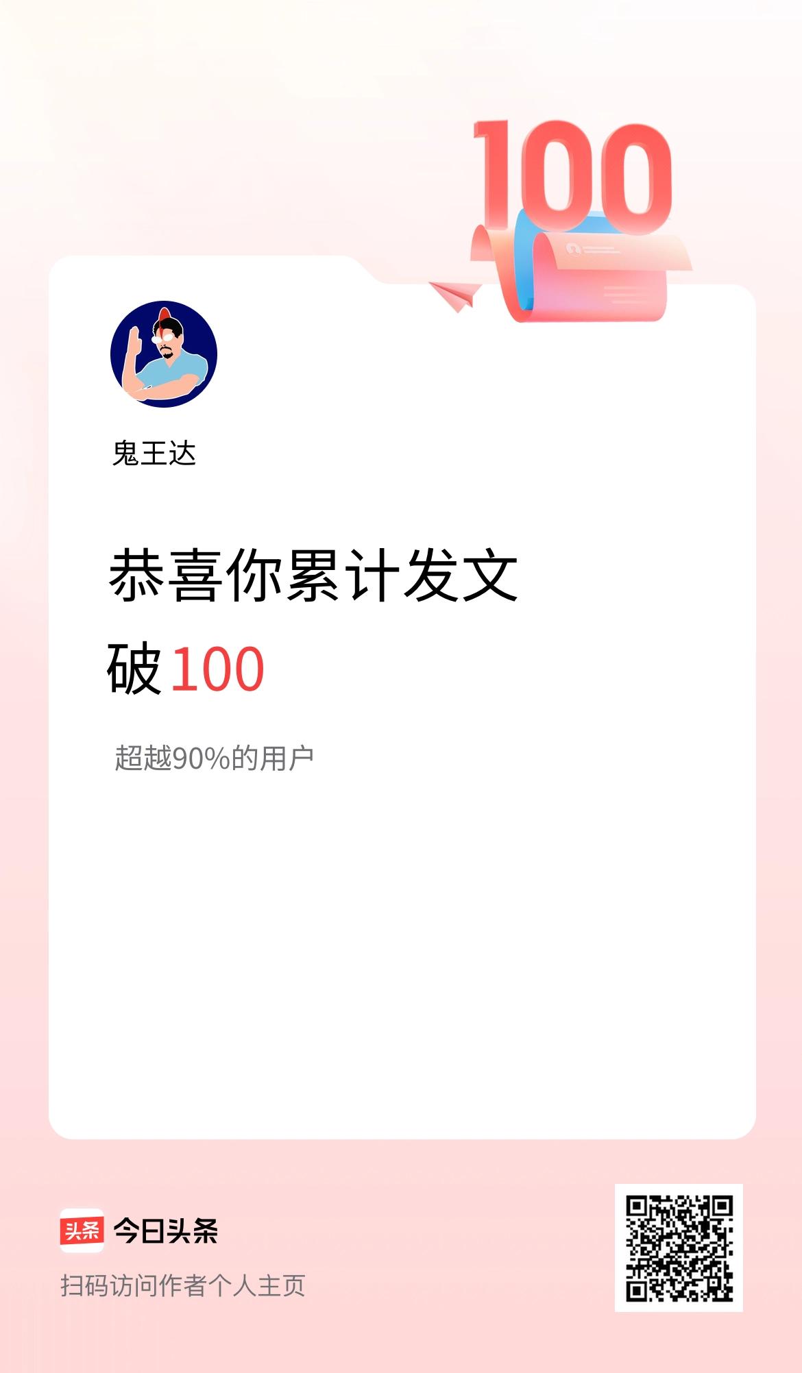 我在头条累计发布内容破100啦!