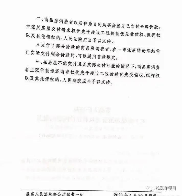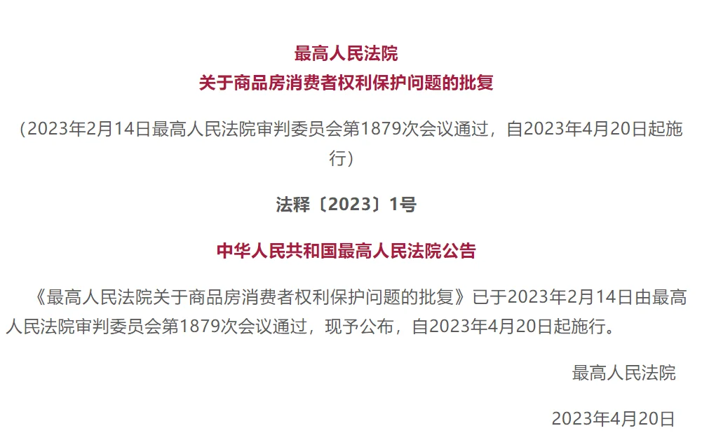 4月20日,最高人民法院发布了最新的司法解释,关于购房者权益的主要内容,出现了重大变化,主要是应对去年的暴雷、烂尾、断供潮,其主要内容有两块)