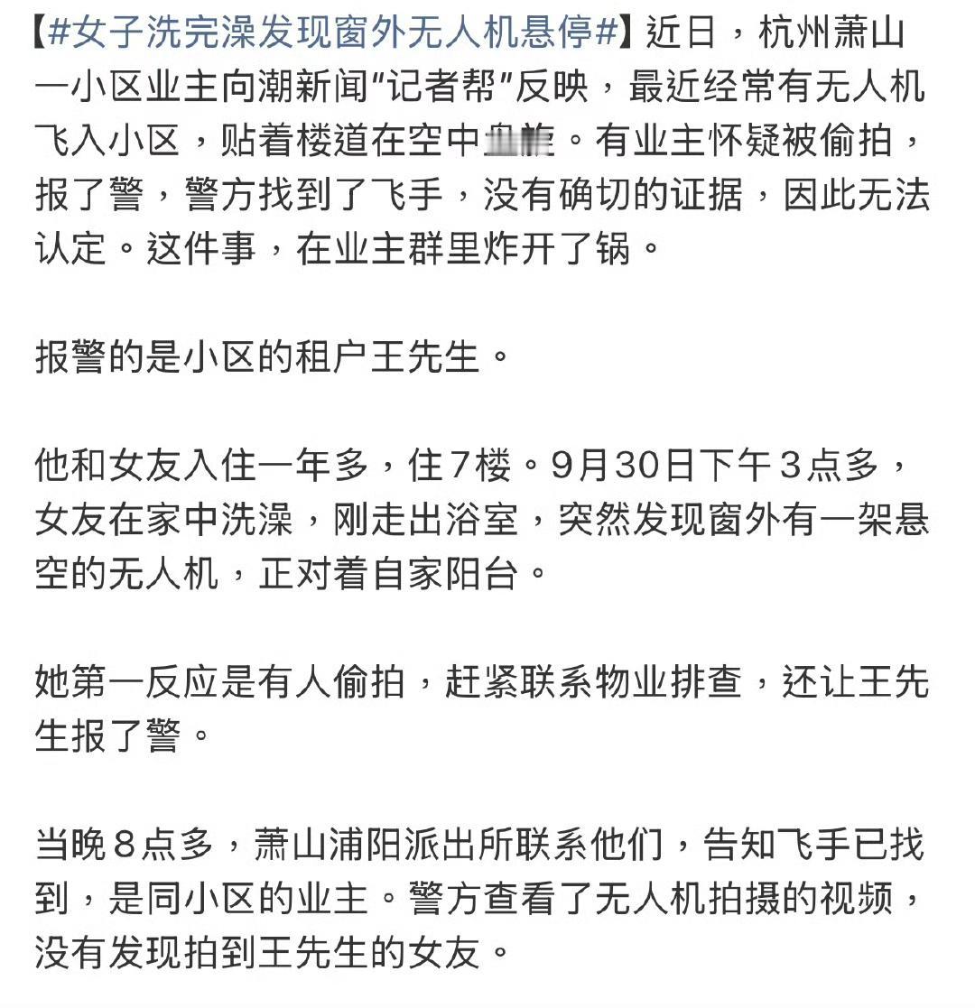 小区里无人机乱飞,洗澡时突然出现!是航拍还是偷拍?律师:已踩侵权红线 杭州
