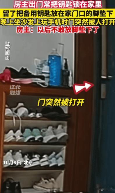 北京,女子把备用钥匙放家门口脚垫下。她晚上坐沙发上时,突然门被打开。女子: 太危险了,以后不敢放脚垫下了。 麻烦各位读者点一下右上角的“关注”,留下您的精彩评论与大家一同探讨,感谢您的强烈支持! 傍晚时分,北京的王女士(化姓)正坐在客厅沙发上看手机,家里的门却毫无征兆地被推开,一位老人探进头来,开口询问是否要卖房。 这突如其来的一幕让王女士心头一紧,待问清缘由才知道,老人竟是从门口脚垫下拿到了自家的备用钥匙,误把这里当成了待售房源。 原来,王女士一家图方便,习惯把备用钥匙藏在门口脚垫下,觉得“随手能拿到,还不显眼”。 可这次,来附近看房的老人路过时,无意间发现了脚垫下的钥匙,以为是待售房屋留的看房钥匙,便试着打开了门。 直到王女士追问“您怎么能开我家的门”,老人才恍然大悟,连忙道歉,称是一时疏忽弄错了房源,随后匆匆离开。 王女士和随后从厨房出来的丈夫后怕不已:“幸好这次是老人误拿,要是别有用心的人,后果不堪设想!” 生活里,很多人都像王女士这样,把备用钥匙藏在脚垫下、门框缝隙里,或是消防栓旁,觉得“别人想不到”,可这些地方早已是大家默认的“藏钥匙点”,容易被误拿。 其实,备用钥匙的存放,安全永远该放在第一位。要是担心忘带钥匙,完全有更稳妥的办法:可以把备用钥匙交给信任的邻居或亲戚,需要时随时联系取用。 嫌麻烦的话,装一套密码锁或指纹锁也很方便,不用再费心藏钥匙,出门连钥匙都不用带,既省心又安全。 家是我们最安心的港湾,安全从不能图一时省事。王女士的这场虚惊,虽没造成实际损失,却像个实用的“安全提醒”。 多一分细心,少一分侥幸,把备用钥匙存对地方,才能真正守住家的安心,这比任何“方便”都重要。 那么你们怎么看待这件事呢?欢迎在评论区说说你们的看法吧! 信源: 江北融媒