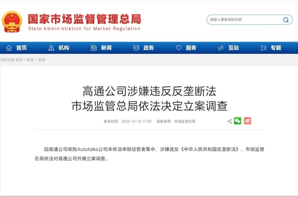 我国密集反制美国,高通也被立案,美专家惊呼“中国全面反击了” 最近的国际局势,像极了棋盘上的残局,局面紧张得让人喘不过气。中美之间这一番来回,已经不是单纯的“你来我往”,而是升级成了全方位的较量。 短短十天里,中国密集出手,不仅对美国多项措施做出针对性反制,连高通这家美国巨头也被拉进了“立案”名单。 美国那头的专家一看,直接惊呼“中国全面反击来了”。可以说,这场大国博弈,火药味十足,谁都不敢小看。 美国最近的日子,可真没那么风光。表面上风头正劲,背地里一地鸡毛。外债高得离谱,已经冲到37万亿美元,光利息都让美国财政部头大。 每次预算谈不拢,政府就来一出“停摆秀”,公务员上班没钱发,民众怨声载道。前阵子美国财政部的报告一出,全球投资者的信心都打了折扣。 美国身为“老大”,但这副家底越来越虚,像极了帝国末路的样子,外面还得硬撑,里面却一团糟。单边制裁玩得太多,自己消耗掉的其实是国家元气。 这种内忧外患的局面,反倒给中国制造了不少腾挪空间。过去美国一挥大棒,全球都得紧张兮兮,现在美国自身难保,反制起来底气可是一点没少。 既然家里有点乱,美国对外动作反倒更频繁。最近几个月,美国政府对中国的打压花样翻新。 9月12日,美国商务部一下子把23家中国企业拉进管制清单,10月8日又追加15家,10月9日财政部一口气制裁约100个目标。 美国通信委员会还要收紧对中国电信企业的限制,生怕慢一步就“被中国追上”。这些做法,典型的“单级霸权”思维,仗着自己是老大,不断插手别国内政,但这种做法早就过时。 越来越多的国际评论都提到,美国这些举措,除了加剧全球紧张局势,收效其实有限。美国自己经济压力大,干脆把压力往外转移,想用对华挑衅来转移注意力,但这招儿也就管一时,治不了根。 说到这里,最有看头的还得数中国这波组合拳。面对美国的步步紧逼,中国没有再一味忍让。反制手段一套接一套,拳拳到肉,打得美国有点招架不住。 比如稀土技术出口管制、港口费率调整,这些都是贴着美国痛点下手。高通事件更是点睛之笔。中国市场占了高通全球营收的46%,一旦失去中国市场,这家美国科技巨头恐怕要元气大伤。 美国财经媒体和专家都直言高通“离不开中国”,这回中国立案调查,等于直击美企要害。对比以往中国以和为贵、更多以协商为主,如今的应变方式明显变得更加主动和果断。 其实,这一系列反制,不仅仅是简单的“打回去”,而是中国针对美国长期单边主义、打压策略做出的系统性回应。过去,中国更多时候选择着眼大局,避免激化矛盾。 但现如今,面对美国一次次加码,中国也不再退让。高通被立案,不只是个案,更代表中国在全球产业链中的地位已经不可替代。 美方专家的“惊呼”,其实是对中国实力和意志的再一次正视。中国的反击,既有技术层面的硬实力,也有政策层面的精准谋划,显示出中国已经从被动防守变成了主动出击。 国际局势就像一场没有终点的马拉松,谁能笑到最后,从来都不是靠一时的爆发,而是长期的定力和韧劲。 美国过去一直以“世界警察”自居,动辄制裁、封锁,但如今的多极化世界,早就不是靠一国说了算。中国这次的反制,既是对美国单边主义的有力回应,也是对自身利益的坚定维护。 时代变了,老套路已经不灵了。中国在博弈中展现出的实力和底气,彰显了大国的责任与担当。 面对中美双方的硬碰硬,未来局势很难一锤定音。老美要学会正视现实,不再幻想靠打压就能维持霸权。 中国则用实际行动告诉世界,和平不等于软弱,理性也绝不是退让。棋盘还在,棋局未定,主动权已经悄然发生变化。中美摊牌,谁能笑到最后,还得看谁能把握住“势”的主动权。 参考资料:高通公司涉嫌违反反垄断法 中国官方立案调查 2025-10-10 19:52·中国新闻网