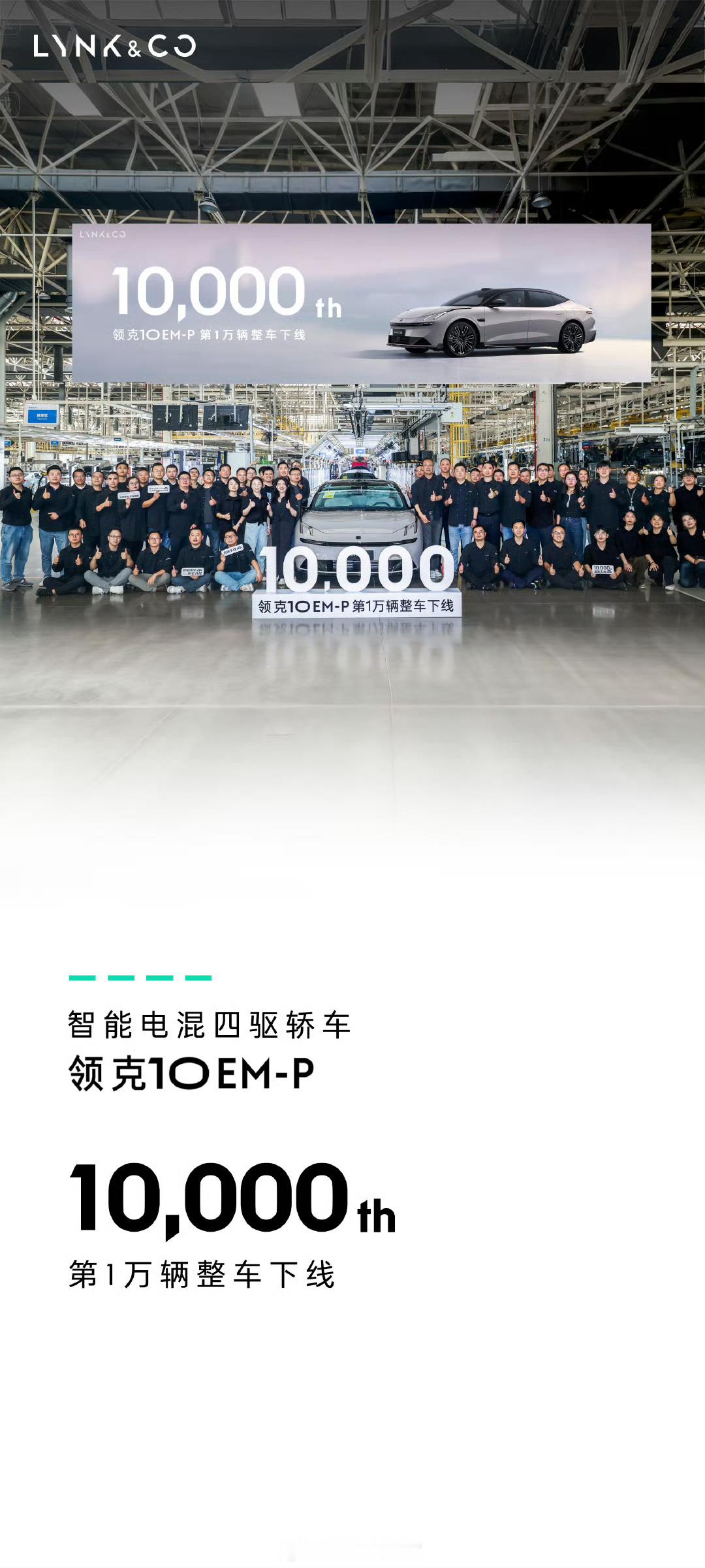 领克10EM-P量产第一万辆下线上市一月,整车下线 10000 辆。308_IO
