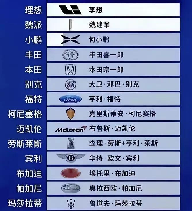 我发现不管是哪个民族、哪个国家,都有人爱把自己的姓字当成企业名,尤其是外国,图里没提到的还有法拉利,就是创始人恩佐·法拉利用自己名字命名的。 这么做就是讲究个传承,而且咱们不管古代、近代还是现代,也有不少用名字或姓氏做品牌的,比如王守义、王麻子、张小泉,还有张记、李锦记这些[尬笑][尬笑] 你们还知道哪些?