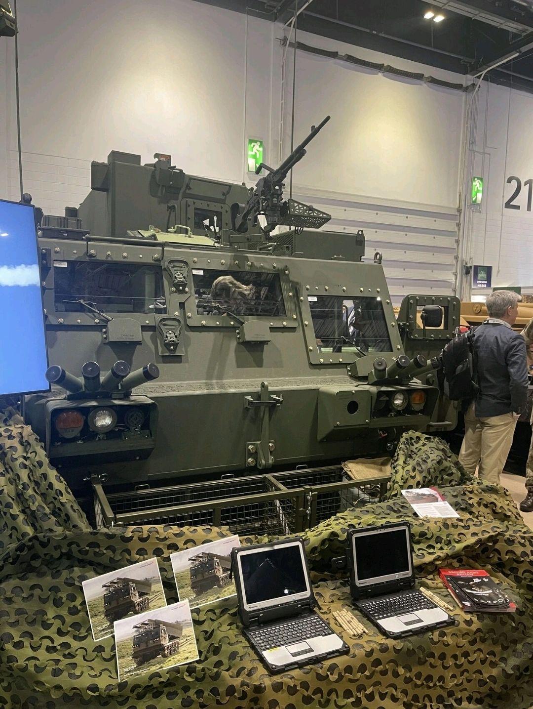 【图5】英国版本的M270A2与美国版本的外观区别是驾驶室前部安装了英国ISTEC Services Limited公司的ISL 66SD/4四联装烟雾弹发射器。