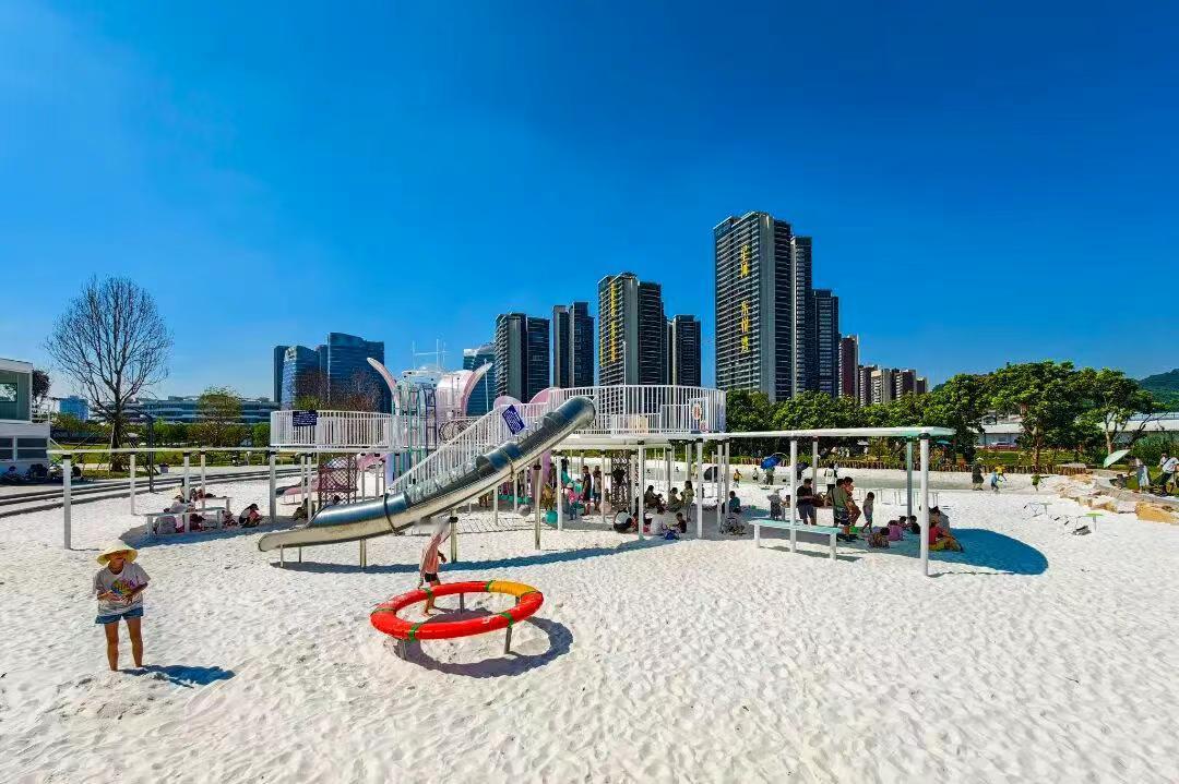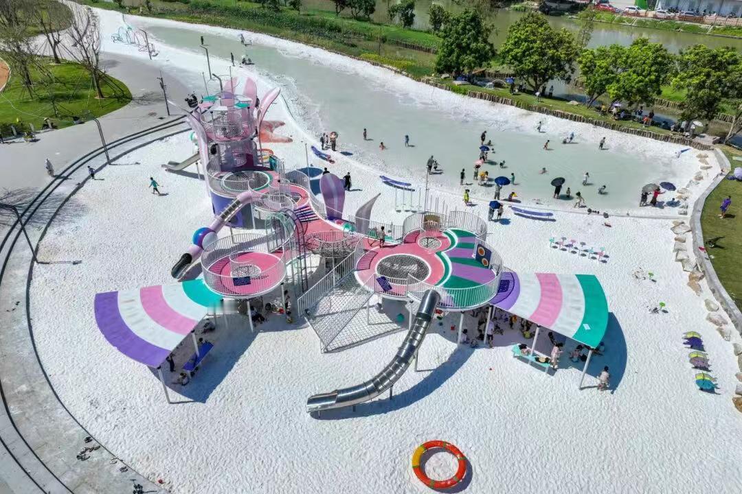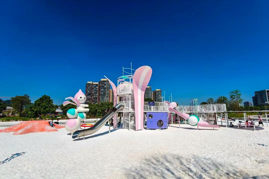 【蕉门岛公园白沙池爆火】蕉门市中心继续有公园上新!位于蕉门岛的蕉门岛公园已建成并开放。这个新建成的公园吸引了大量市民前来打卡游玩,因为这次蕉门岛公园设置了一个小朋友最爱的沙池水池,而且还是网红元素的白色沙滩。搭配旁边的粉色大型滑梯游乐设施,妥妥的出片圣地。 除此之外,公园还打造花海、休闲沙滩、草甸剧场、健身环道、音乐草坪、野趣花境、草境迷宫、林荫垂钓等配套服务设施,变身为市民亲水游乐、露营休闲、音乐集会的空间。 小编国庆期间也是来这里玩过了,沙子真的是很白,不过现场依旧还是很晒,建议大家下午4点之后过来玩最合适,5点左右人流最多。建议大家多带一套更换的衣服,现场有清洗设备。 考虑到接下来天气将逐渐变冷,建议大家趁最近气温合适,赶快来玩。另外考虑到目前人流真的是爆火,估计一段时间之后,白沙滩可能也会慢慢变黑沙滩了。 过去的话,开小车可以从海滨路通过聚星桥走过去,另外开电鸡的话,可以从东湾村村委会那边的小桥直接开进去直达。
