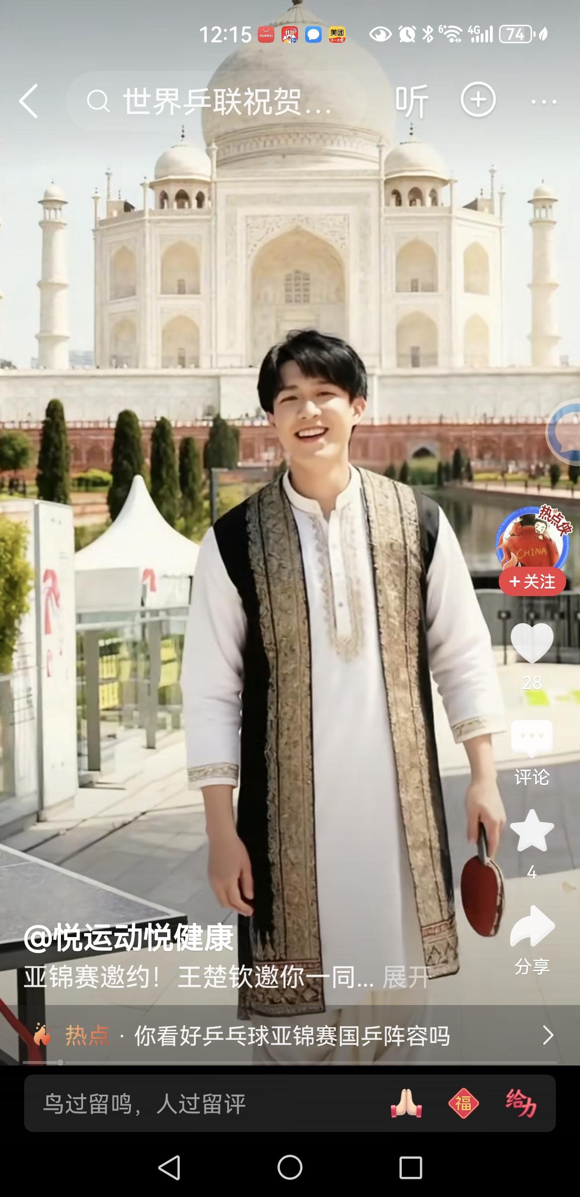 一对惹人怜爱的璧人!这样的“莎头”你见过吗? 网友真是才华横溢,为“莎头”换上了印度的民族服装,莎莎娇俏玲珑,大头英挺帅气。 祝愿“莎头”在亚锦赛上一举折桂,祈愿国乒载誉而归!