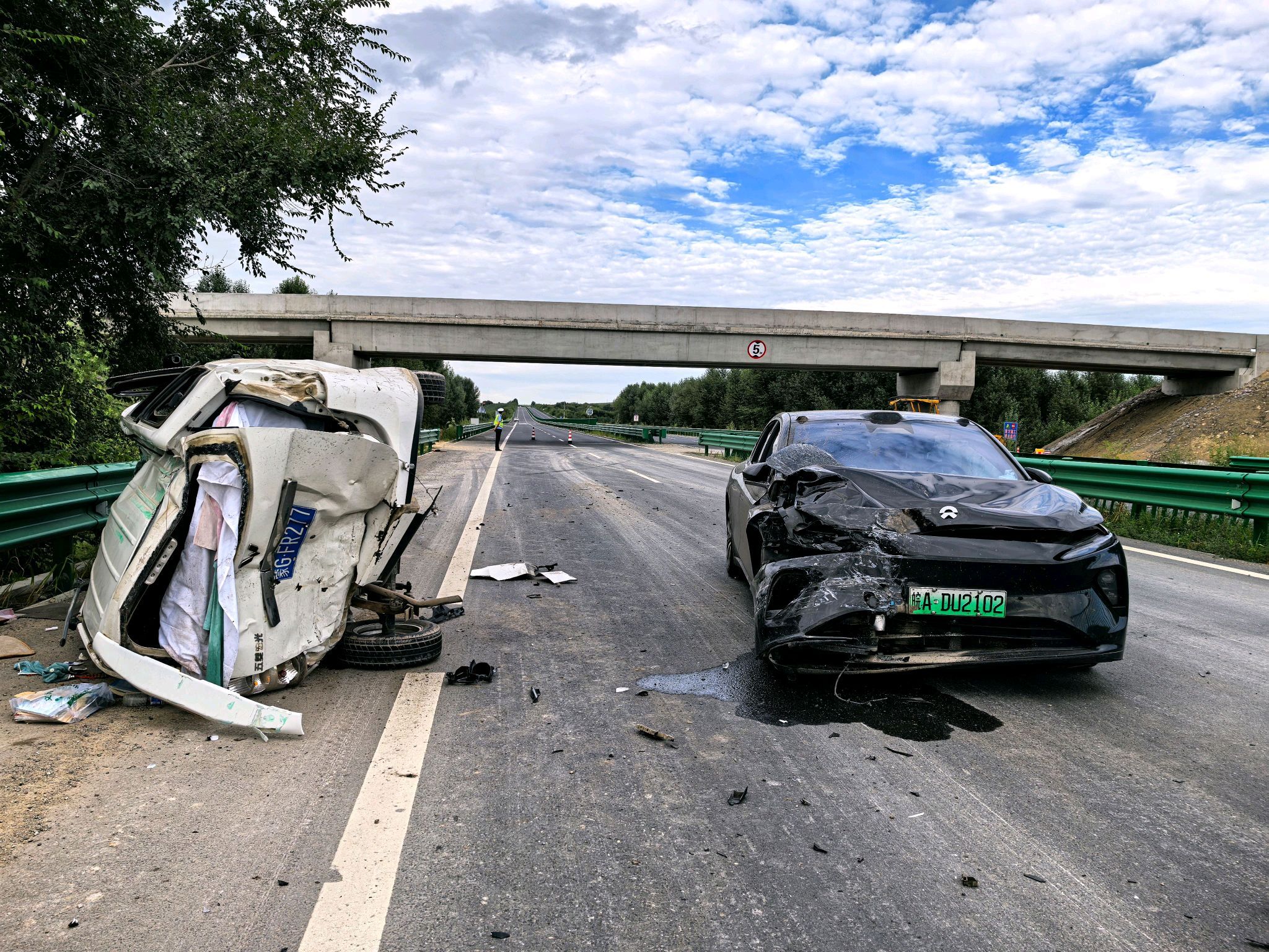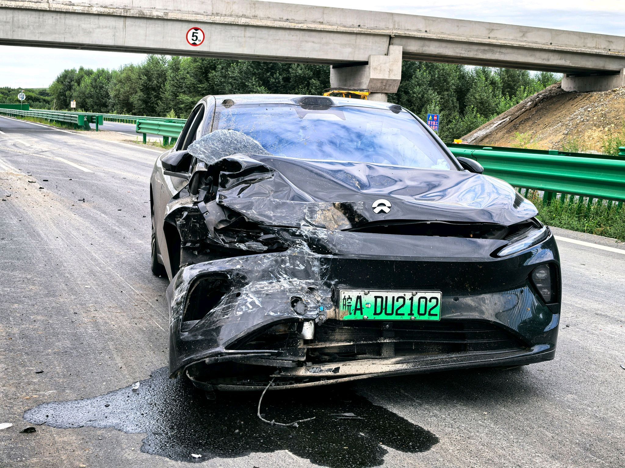 蔚来也是真的梆硬啊给人蓝牌撞成废铁了就