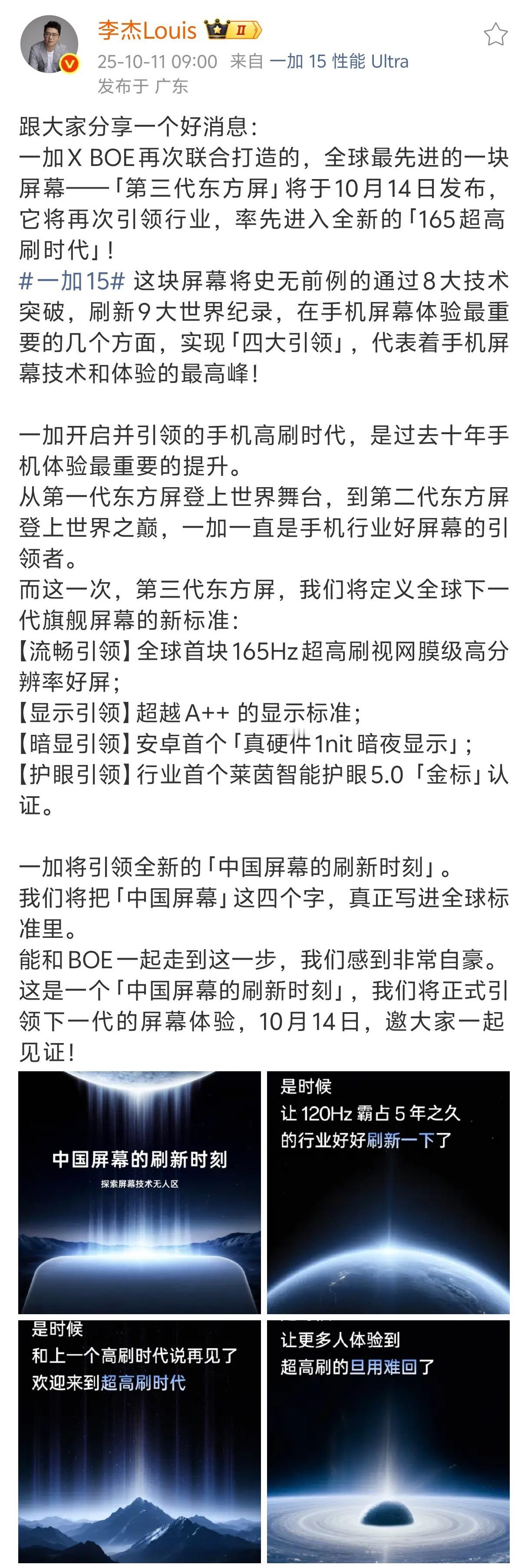一加13那块屏幕已经很顶了,这次一加15目前只知道刷新率到了165Hz,别的还有惊喜?[收到]