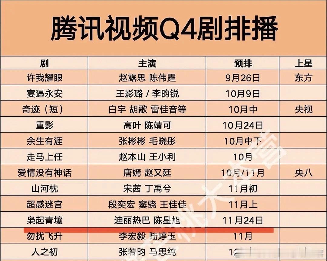 网传枭起青壤11月24日播出网传迪丽热巴、陈星旭的《枭起青壤》预计下个月大概是11.24左右播出