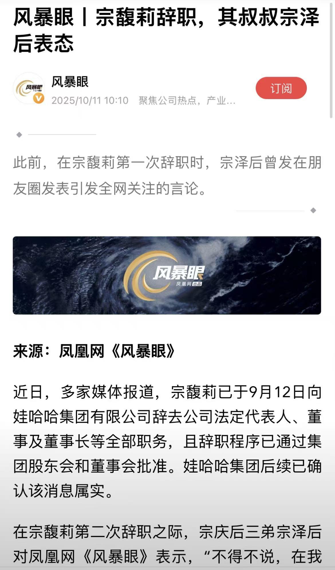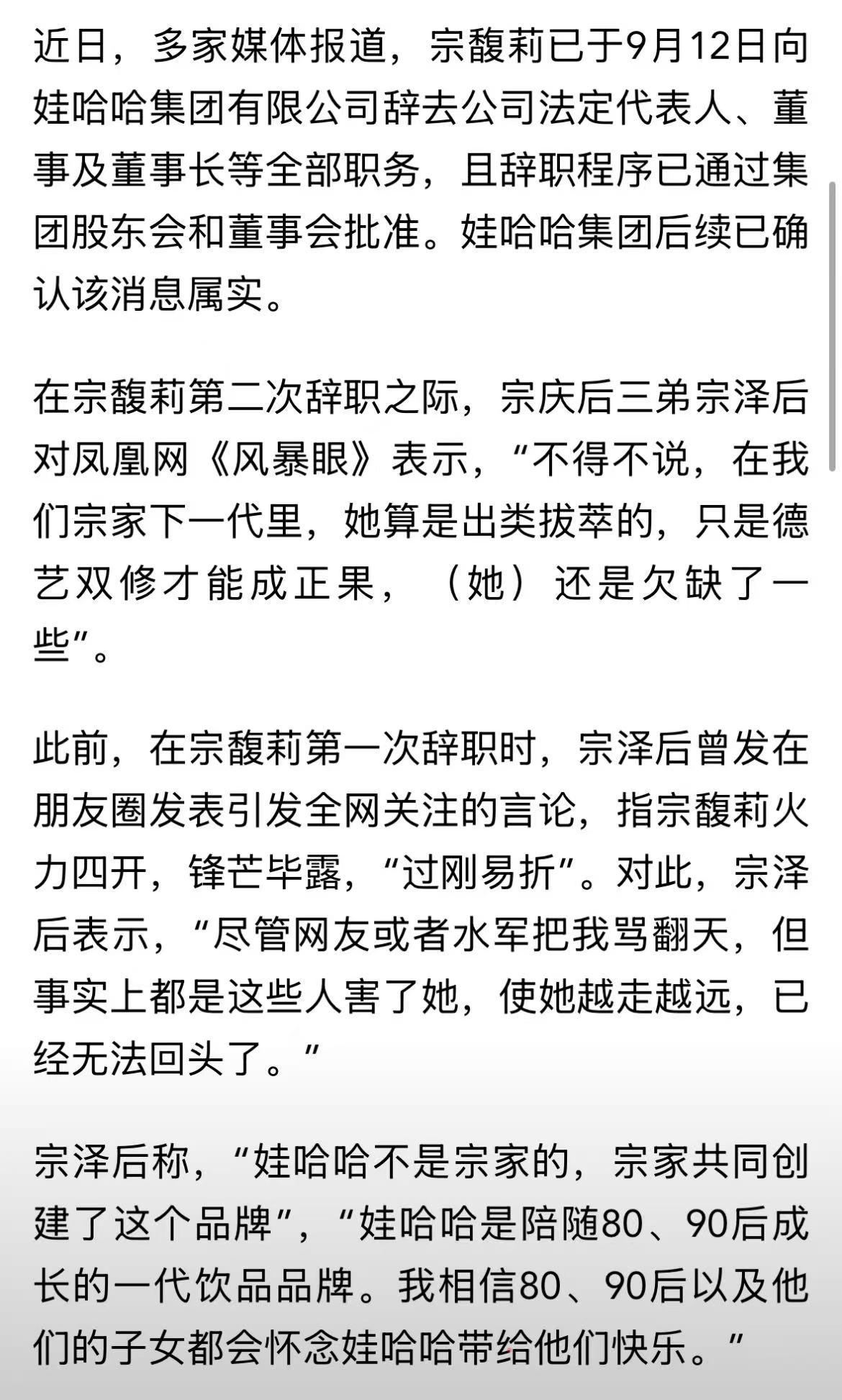 宗馥莉情况不妙!不知道你发现了没?每次关于宗馥莉的消息,她的三叔都会跳出来表态,