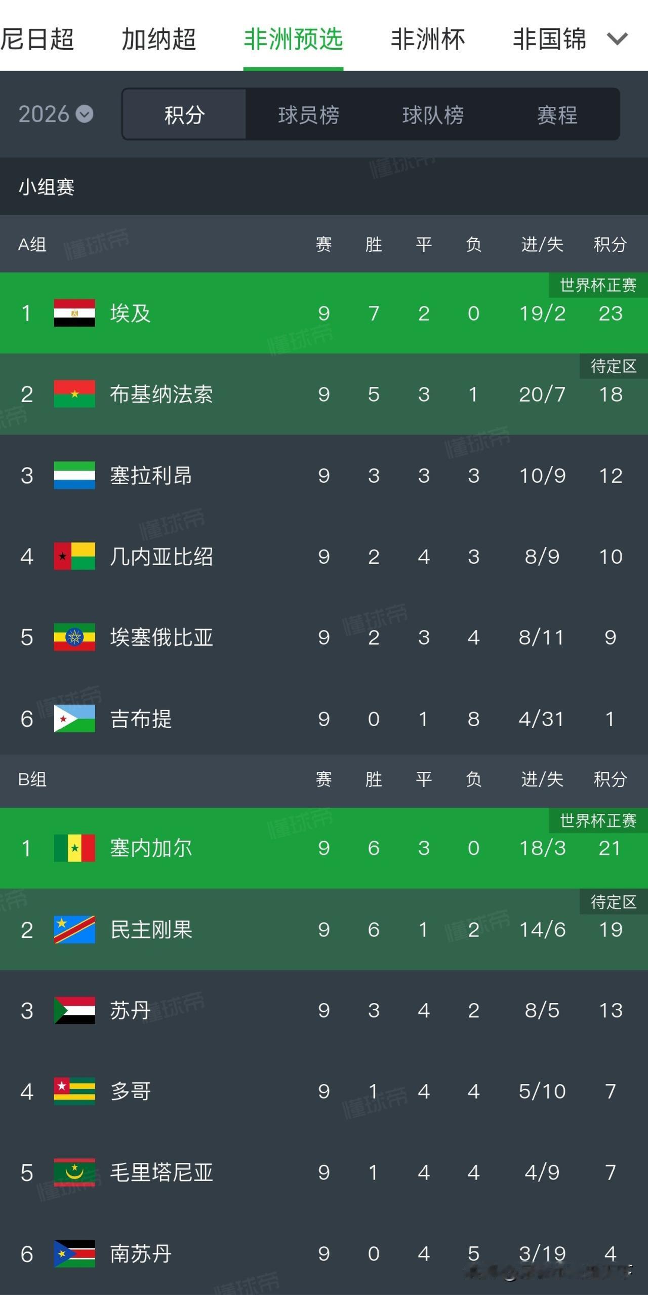 突然发现非洲区C组才是真正的死亡之组啊,前三谁能出线最后一轮才能见分晓。 这悬念