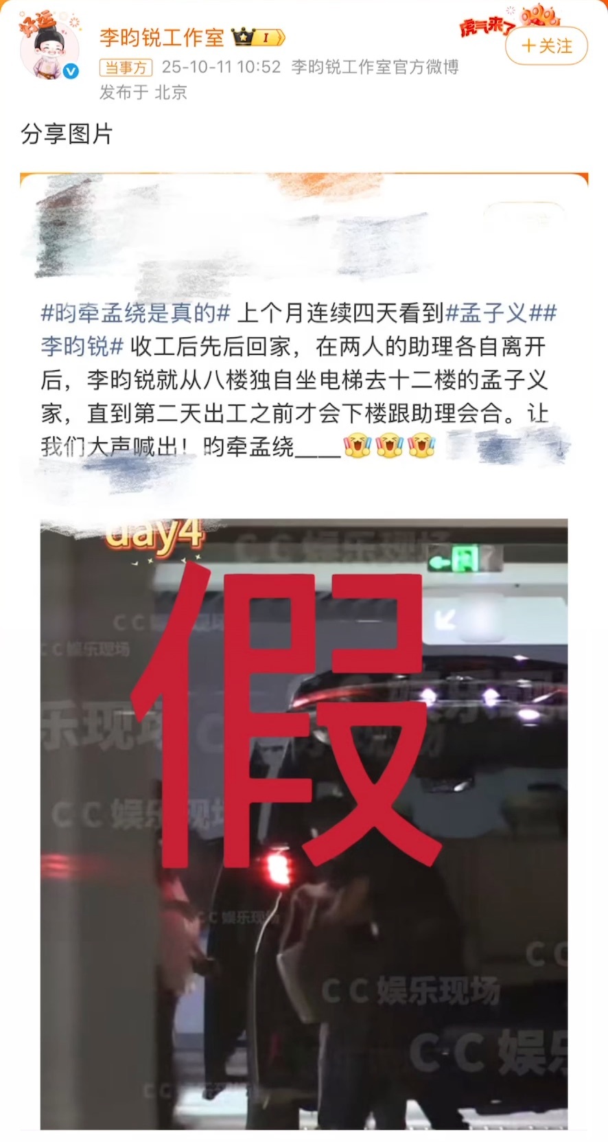 工作室辟谣孟子义李昀锐恋情 和 相继发博否认恋情,双方发博时间仅差一分钟、打假图片格式极为相似,明显双方团队是经过商量、统一了口径。[团圆时刻]