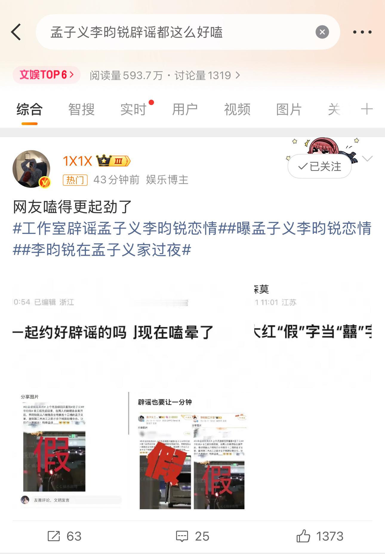 曝孟子义李昀锐恋情工作室辟谣孟子义李昀锐恋情非常完美的一次营销策划。狗仔爆料李昀锐到孟子义家中过夜,做实昀牵孟绕恋情为真➡️过夜视频没有双方同框画面,仅有狗仔背景音解说,为以后否认恋情留下空间➡️双方工作室以相近时间、相似格式发文否认恋情,明面上安抚唯粉恋情是假,暗地里又让CP粉嗑到糖点➡️最后唯粉认为恋情是假,CP粉认为恋情是真,吃瓜群众讨论是真是假,明星团队美美收获大波热度➡️双方都很认真经营这个CP,真人恋情是真是假外界无从知晓