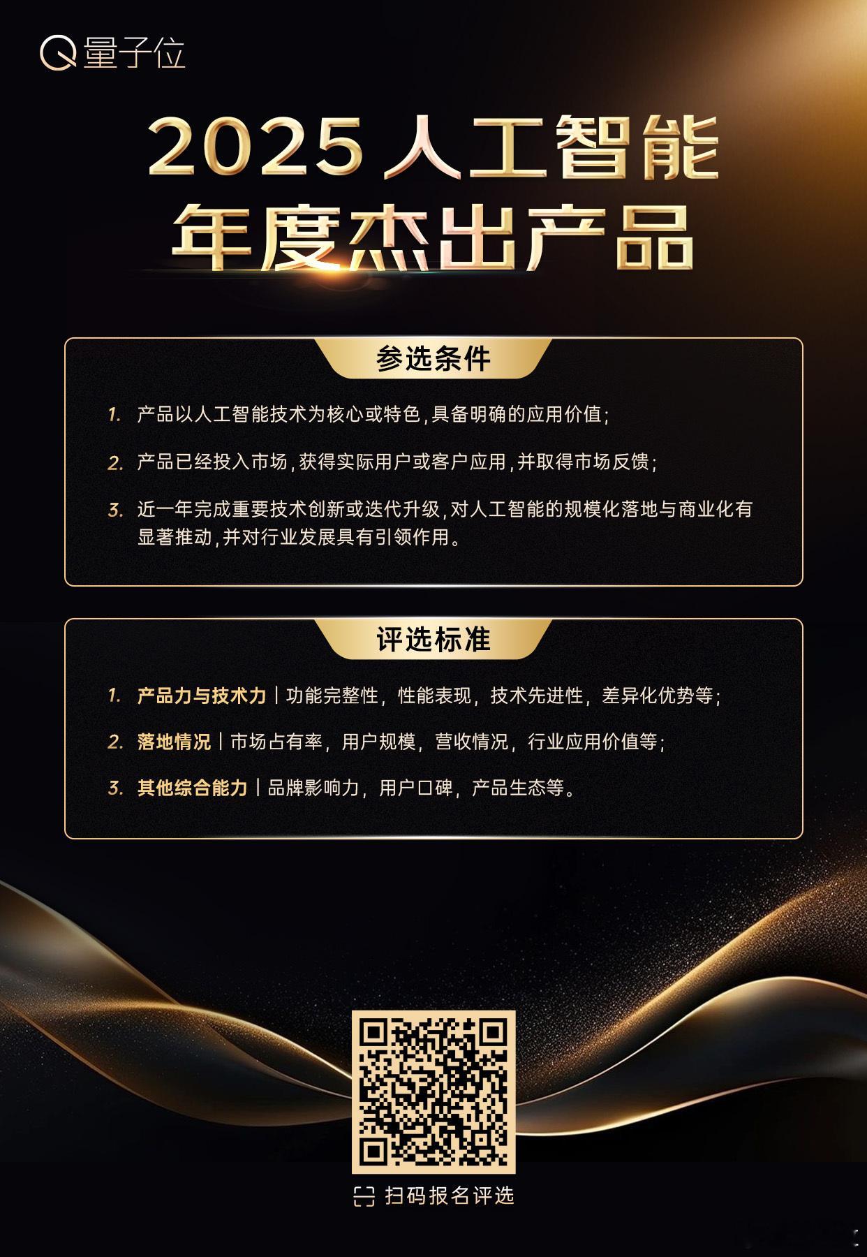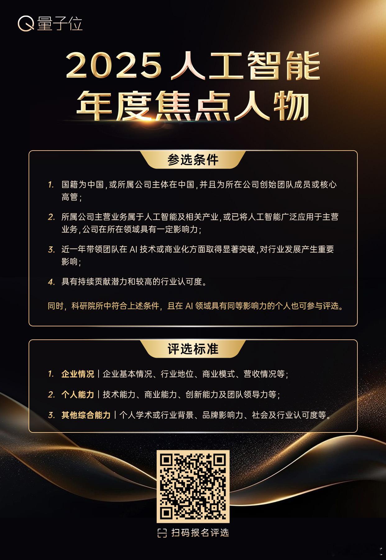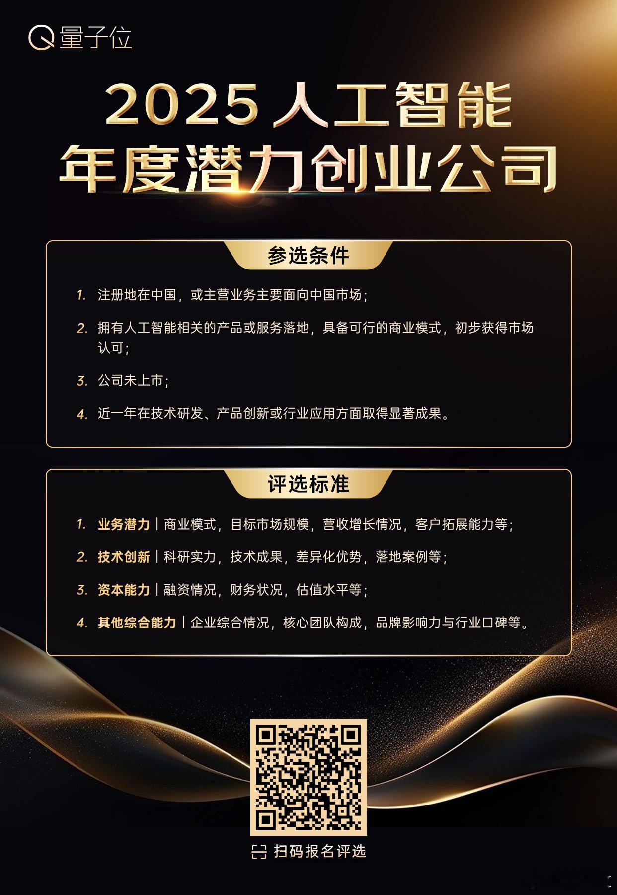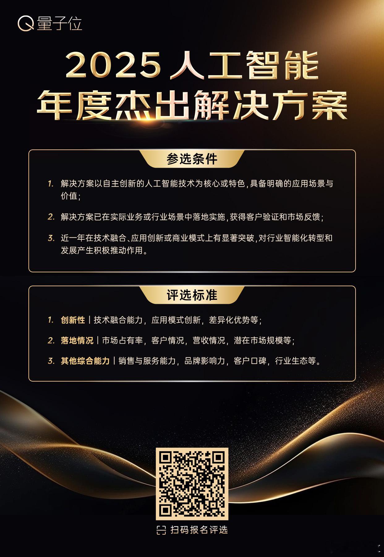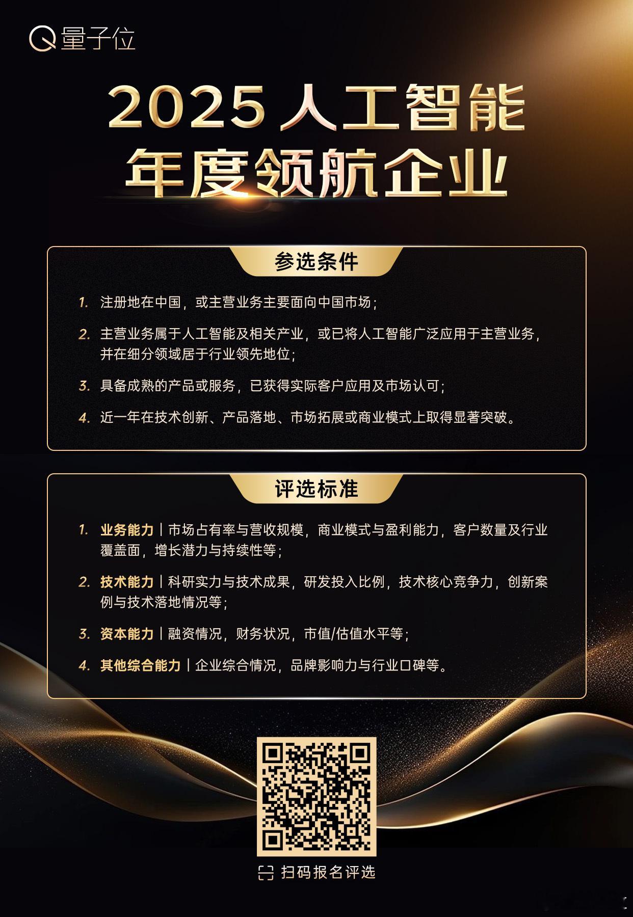 量子位2025人工智能年度榜单正在火热报名中🔥五大榜单,欢迎参与,扫码报名